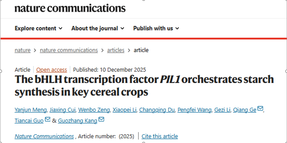 12月10日,禁漫 郭天财教授和康国章研究员带领的小麦高产抗逆分子调控创新团队在《Nature Communications》上在线发表了The bHLH transcription factor PIL1 orchestrates starch synthesis in key cereal crops研究论文。该研究揭示了转录因子PIL1调控重要粮