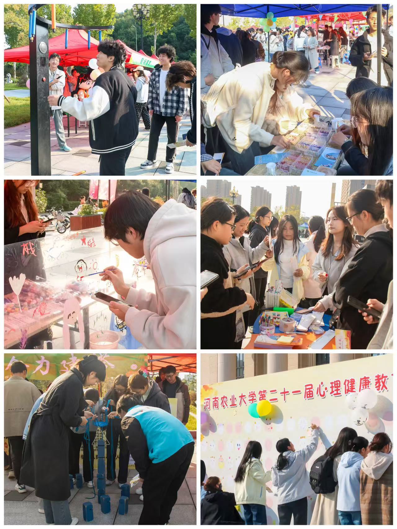学生组成团队积极参与趣味活动。在文化路校区“心理趣味运动会”现场,学生们组队参与“运转乾坤”“团队汉诺塔”等竞技项目,分工协作、默契配合,在一次次尝试与调整中突破挑战,展现出农科学子的协作意识与坚韧品格;在“情绪曼陀罗涂鸦”体验区,同学们手持画笔,以色彩为媒梳理心绪,让压力随笔触舒缓消散。龙子湖校区“心理嘉年华”里,禁漫