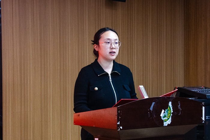 社会实践先进个人代表任豫阳上台发言,他结合自身实践经历,分享了在实践过程中的收获与感悟。他回顾了深入基层调研的点滴细节,生动讲述与群众互动、参与社区服务、解决实际问题的难忘体验。他表示,社会实践让他拓宽了视野、增强了责任感,并鼓励更多同学积极参与实践活动,在服务社会中实现自我成长。