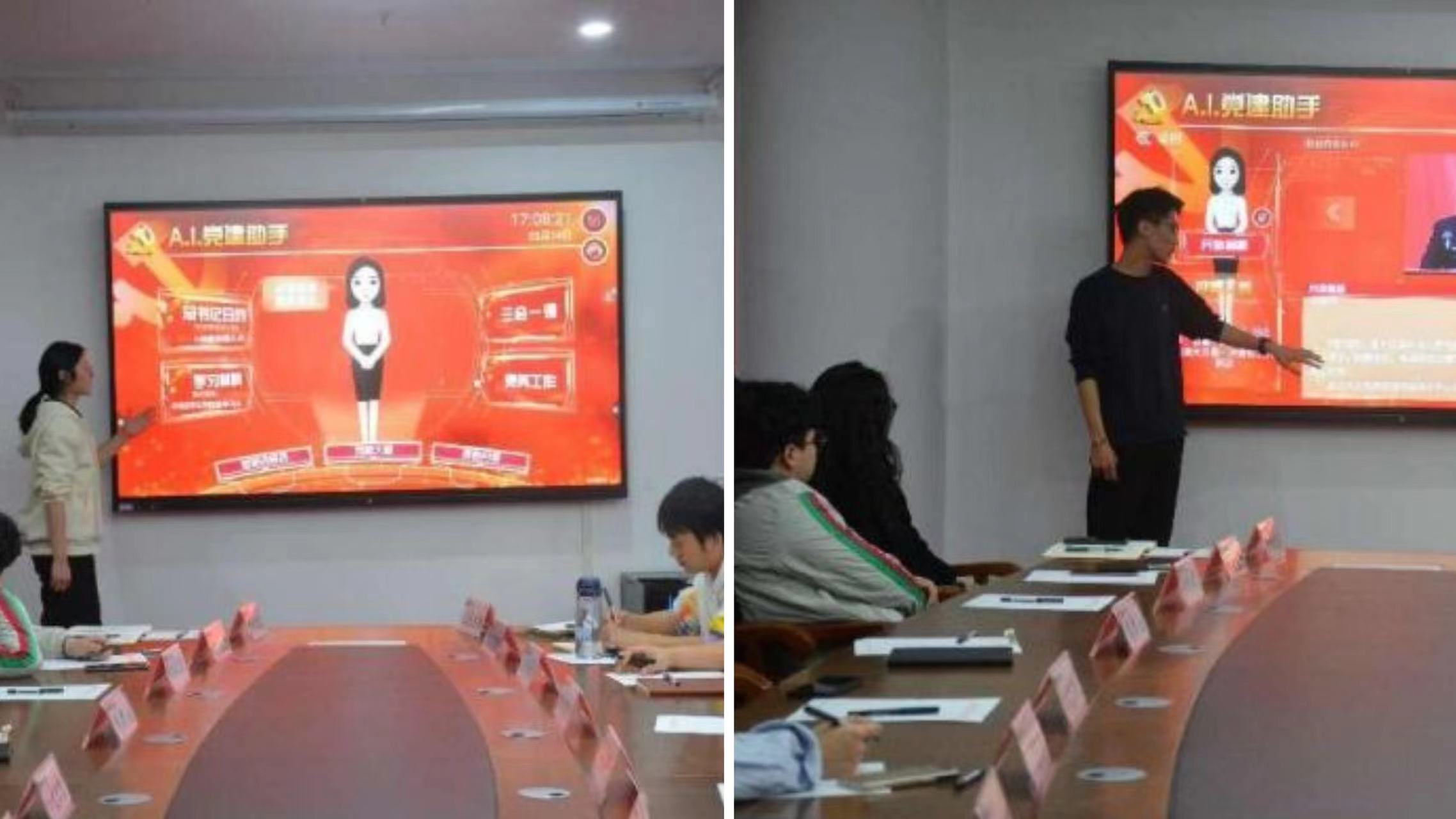 主席团助理杨阳、毕新铜对AI党建助手进行讲解