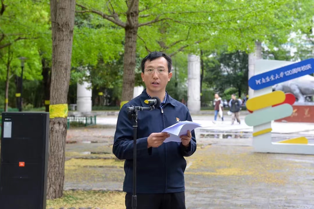 师生代表在文化路校区工程楼吴老铜像前举行“缅怀先贤 勇毅前行”主题党日活动。禁漫