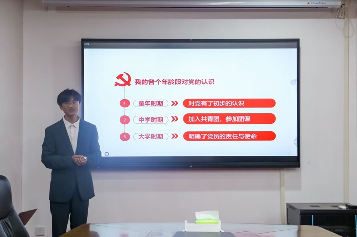 于龙子湖校区第一实验楼南201和222教室开展2025年上半年本科拟发展对象面试答辩工作。院团委副书记唐朝、院团委辅导员杨航、学生党支部书记和委员、团支部委员代表担任此次面试评委。