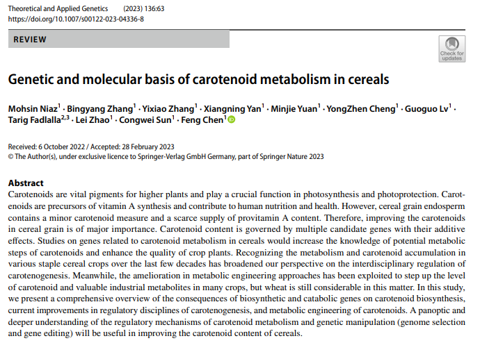 类胡萝卜素是维生素A合成的前体和对人类营养和健康具有重要作用。然而谷物籽粒中的类胡萝卜素含量较少,因此开展类胡萝卜素相关研究具有重要意义。在这项研究中,我们针对类胡萝卜素生物合成通路的基因和分解代谢基因的提出了一个全面的概述,以及现阶段对类胡萝卜素相关基因的改善和相关代谢调控。对类胡萝卜素的调控机制有更深入的代谢了解和遗传操作(基因组选择和基因编辑)将有助于改善谷物的类胡萝卜素含量。禁漫