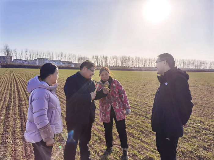 本网讯(通讯员 董纯豪)2023年1月29日,新春伊始,我校小麦专家、省小麦产业技术体系抗病抗逆岗位专家殷贵鸿研究员赴沁阳市调研小麦生长情况,先后到沁阳市王召乡、崇义镇和西向镇等地调查小麦苗情,走访了沁阳市新新家庭农场、河南乐丰种业公司小麦种子繁育基地。向沁阳市农业农村局主要领导提出“因地制宜,看苗管理,运筹肥水,稳壮控旺,促晚早发,预防倒春寒,科学防治病虫草害”等春季麦田管理建议。针对沁阳市前茬种植怀山药造成小麦播种过晚的麦田如何科学管理的迫切问题,专门到沁阳市种粮大户原体亮、郭建国等人的晚播麦田进行具体的技术指导,详细介绍了早防治纹枯病和茎基腐病等的科学措施,受到了沁阳市领导和农民群众的热烈欢迎和好评。