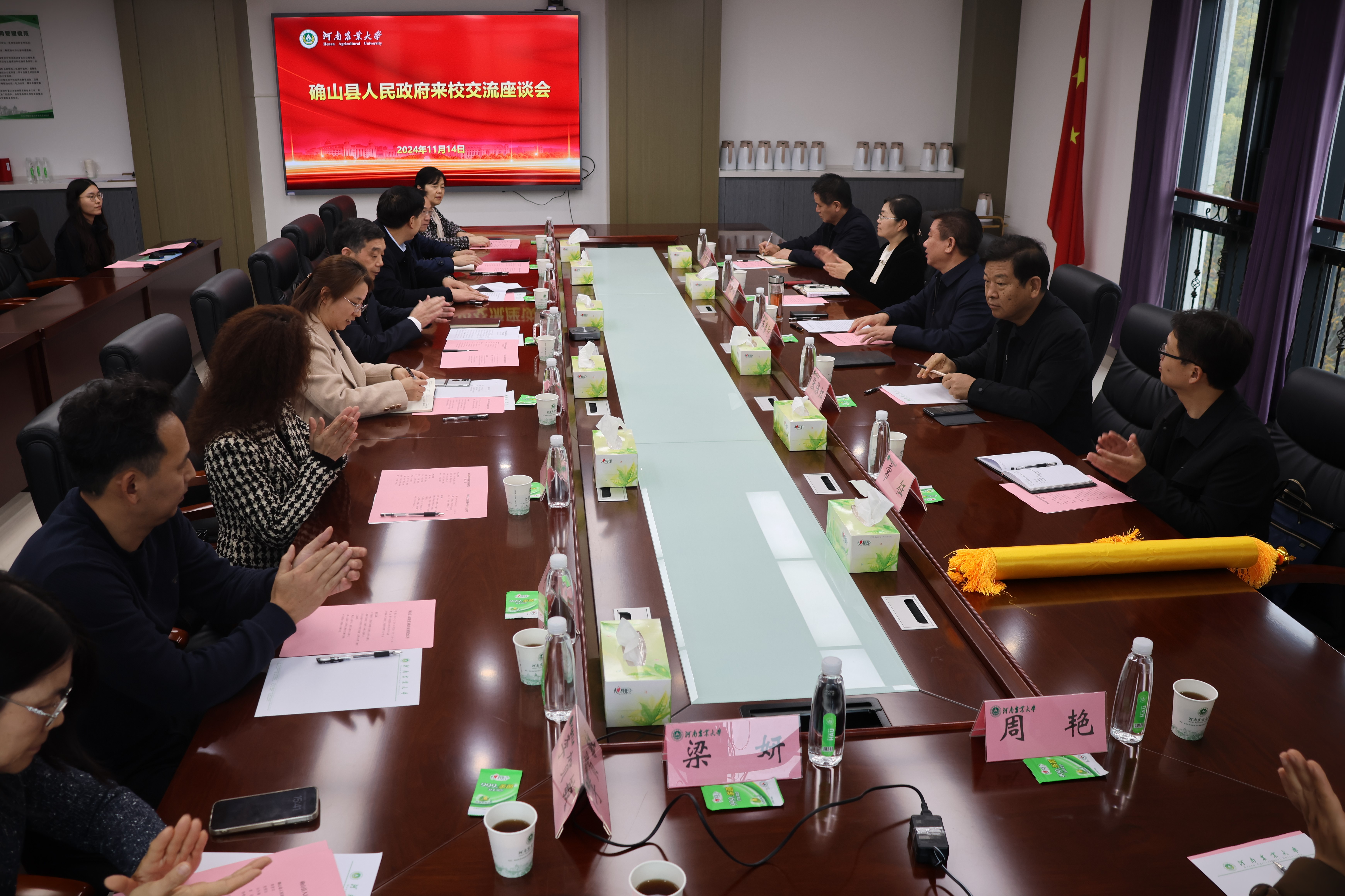 赵鹏简要介绍了学校近年来强力推进“双一流”创建、深化与中国农业科学院融合发展的有关情况,回顾了长期以来学校与确山县的校地合作进展情况,表示双方合作既有历史渊源,也有产业基础,更有发展前景,学校愿与确山县人民政府进一步深化合作,推动更多引领性项目落地确山,争取更多科技成果在确山孵化、转化、产业化,培育形成更多新质生产力,以科技创新助力确山县乡村全面振兴。