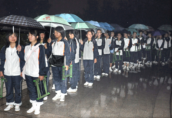 很快,办法想出来了,该院几名高年级学生干部向住在校区的2009级和2010级学生发出了倡议,提议大家以班为单位,为新生借雨伞,帮助新生顺利返回桃李园学生公寓。倡议发出不久,大家纷纷响应,不到1个小时,各班就送来雨伞200余把,在学生干部的安排下,2名新同学共用1把雨伞,顺利地回到了桃李园学生公寓。