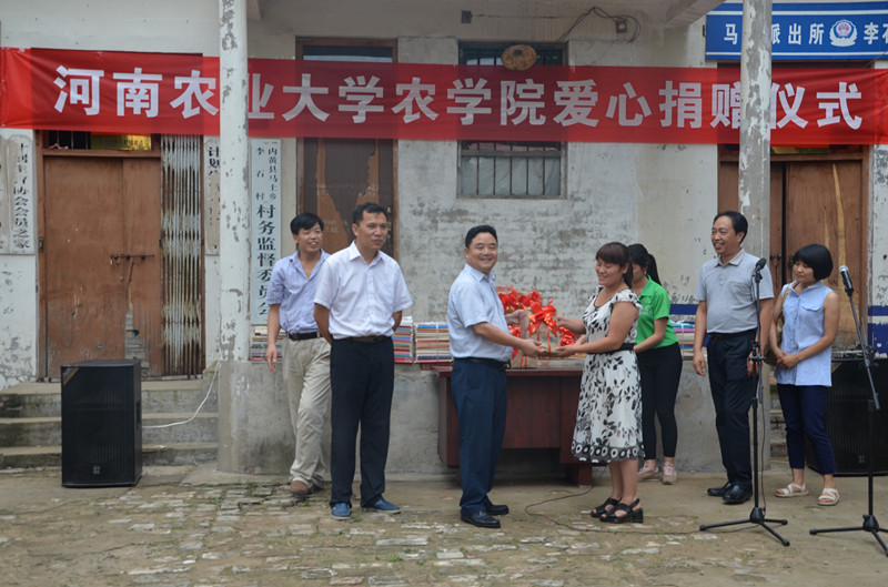 马上乡党委书记周贵安致辞,对河南农大师生的到来和捐赠义举表示热烈欢迎和衷心感谢。校党委副书记褚金海在仪式上讲话,对李翠丽女士积极投身公益事业,零门槛创建“微光书苑”,促进基层文化事业的做法表示肯定、敬佩和感谢。他简要介绍了学校的历史概况,近年来取得的突出成绩和为河南经济社会发展做出的突出贡献。褚金海表示,服务地方是禁漫