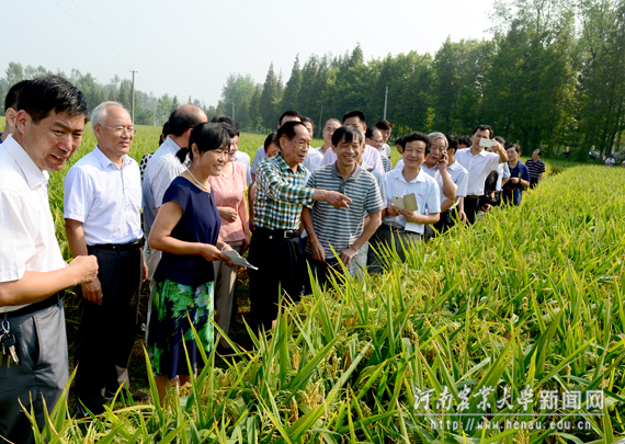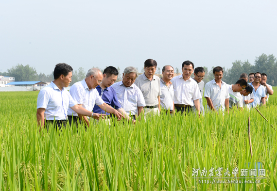谭金芳一行察看在我校水稻试验基地