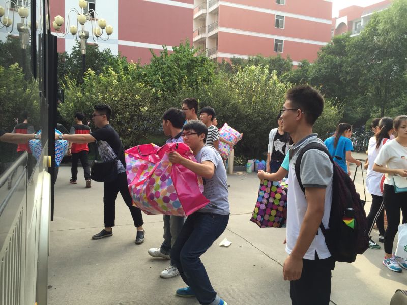 2014级龙子湖校区393名学生于9月5日上午有序搬迁至文化路校区。