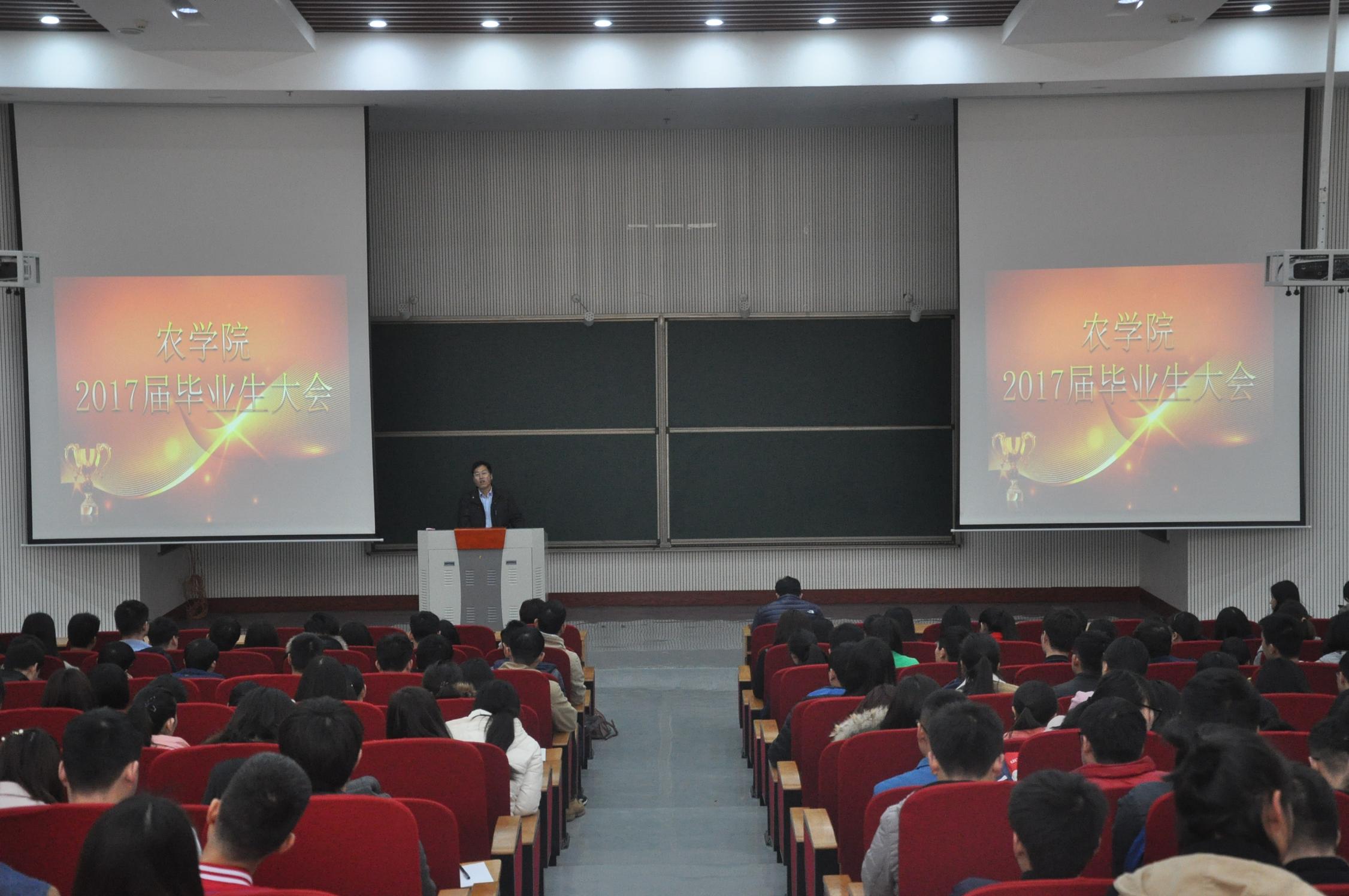 在龙子湖校区繁塔楼大教室1举行2017届毕业生大会。学院领导、团委老师以及2017届全体毕业生参加大会。大会由院团委书记冯晖主持。
