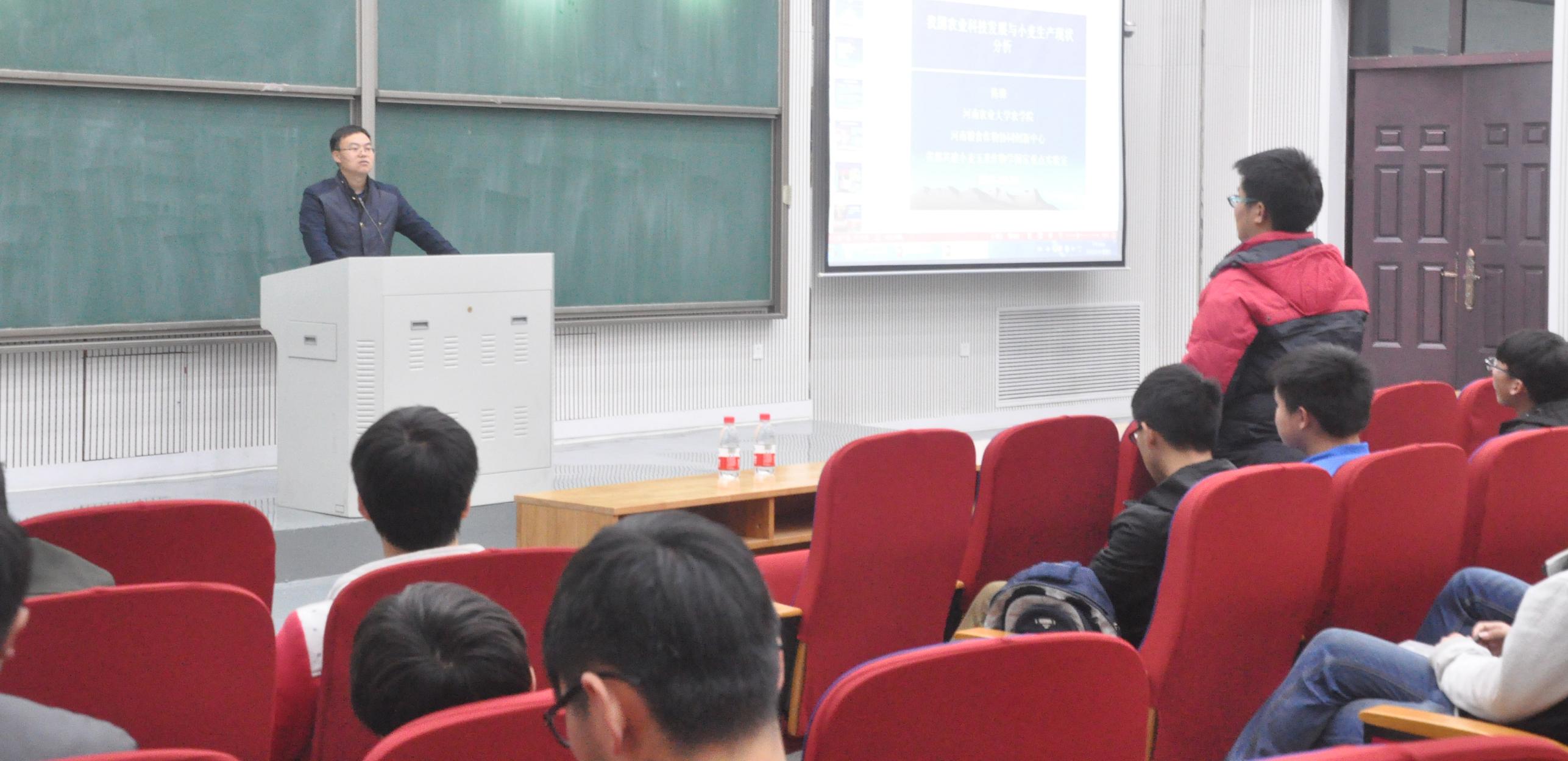 的了解、对吴绍骙教授的了解等三个问题入手,引发在座学生思考自己是否了解所学专业以及是否“热爱”它,并强调了对“热爱”所学专业的重要性。陈教授从学校的百年历史讲起,并结合自身的经历,引导学生学农爱农,激励和鼓舞同学们要有一种“现在,我为农大自豪;以后,农大以我为骄傲”思想,在专业上实现自身的价值。