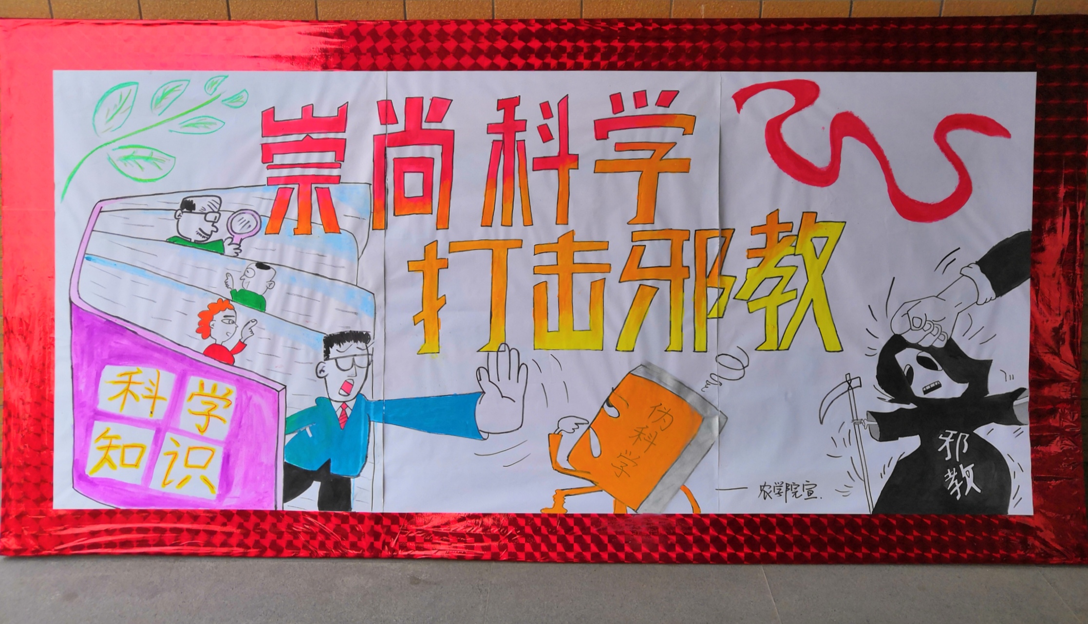 宣传活动期间,各班级开展以“对邪教说不”为主题的演讲,同学们通过演讲向大家展示了自己对邪教的看法,通过典型事例向大家讲明反对邪教的必要性,同时呼吁大家“崇尚科学,反对邪教”,树立正确的人生观和价值观。随后,各班级同学观看了《崇尚科学,反对邪教》,视频以直接生动的形式让广大学生了解到什么是邪教组织、如何辨别邪教组织、邪教组织的危害以及如何远离、抵制邪教组织。同学畅所欲言,积极交流应对邪教的方法,以增强对邪教的抵制力。最后,各班级开展了以反邪教为主题的知识竞赛,积极宣传反邪知识,强化正确的人生价值观。同时,同学们通过巧手画笔,积极制作反邪教主题展板,充分展示了“崇尚科学、反对邪教”的生活态度,以及从我做起坚决抵制邪教侵蚀的坚定信念。
