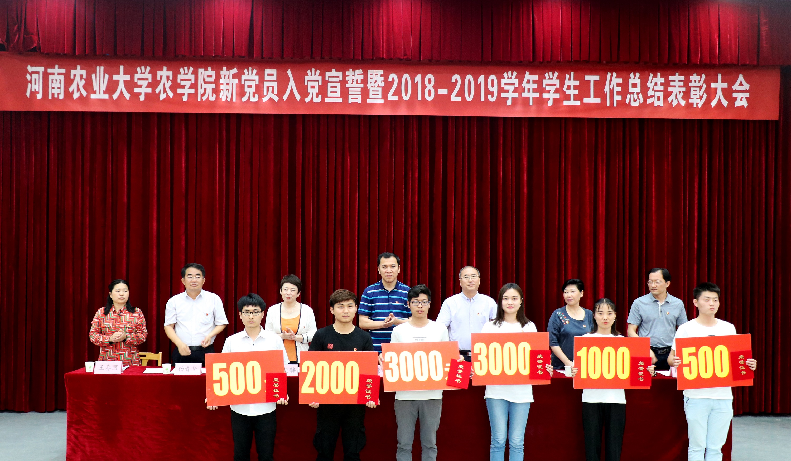 随后,副院长蔡祖华宣读《关于表彰2018-2019学年先进集体和先进个人的决定》和《关于表彰第八届十佳“爱农标兵”的决定》;副院长杨青华宣读《关于表彰2018-2019学年“学风建设先进集体”的决定》和《关于表彰2019届“优秀毕业生”的决定》;院团委书记冯晖宣读《关于表彰2018-2019学年“创新创业优秀团队”的决定》;院办公室主任王春丽宣读《关于表彰2018-2019学年优秀运动员和先进文体工作者的决定》。与会领导分别为获奖集体和个人颁发了荣誉证书和奖金。