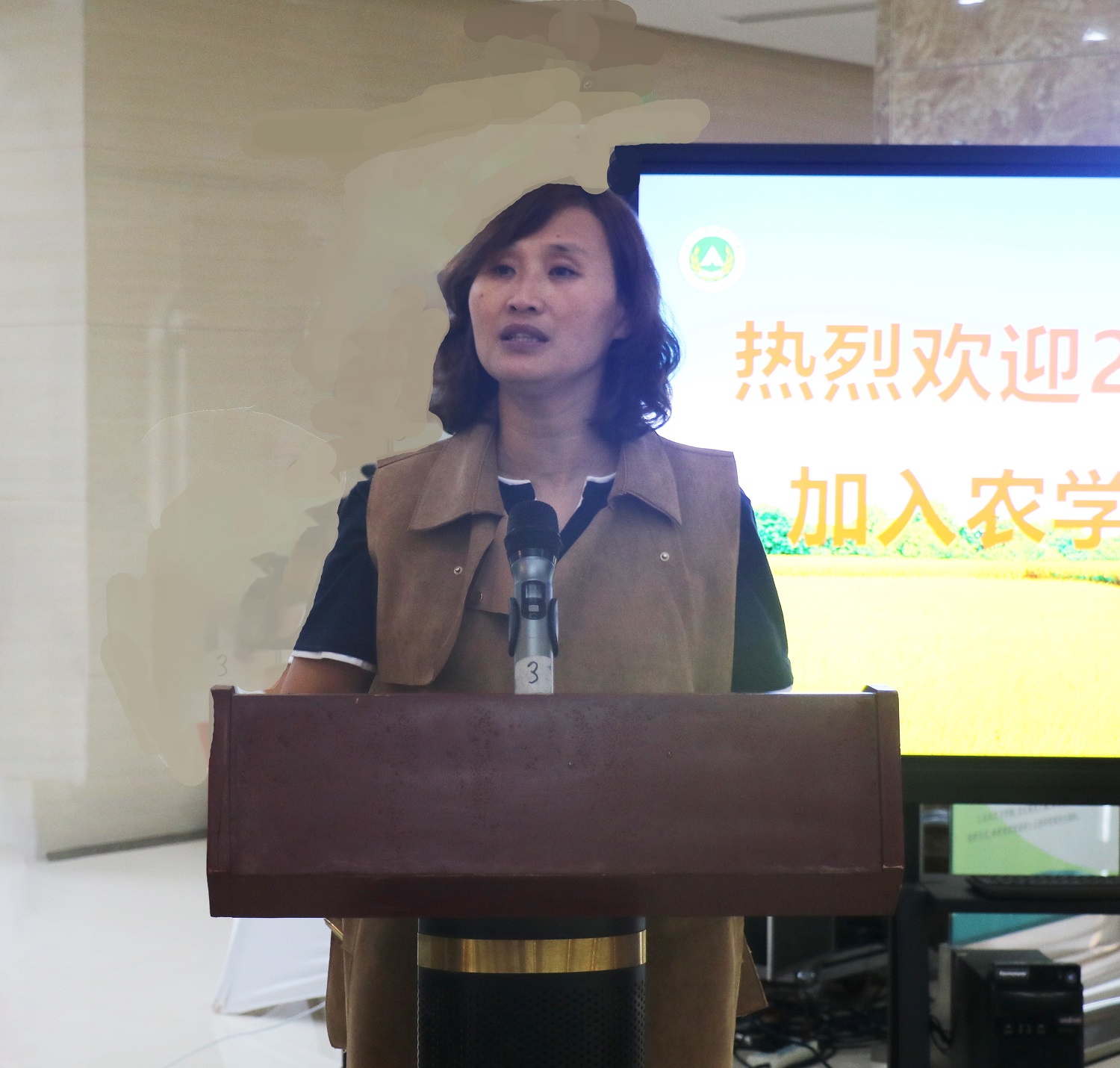 教授、博士生导师吴刘记作为教师代表进行发言。她勉励新同学要努力拼搏、积极上进、全面发展;她强调新同学要有世界眼光、立志成为农科领域的领军人才;她希望大家以饱满的热情投入到新的学习生活中去,谱写最美丽的青春华章。
