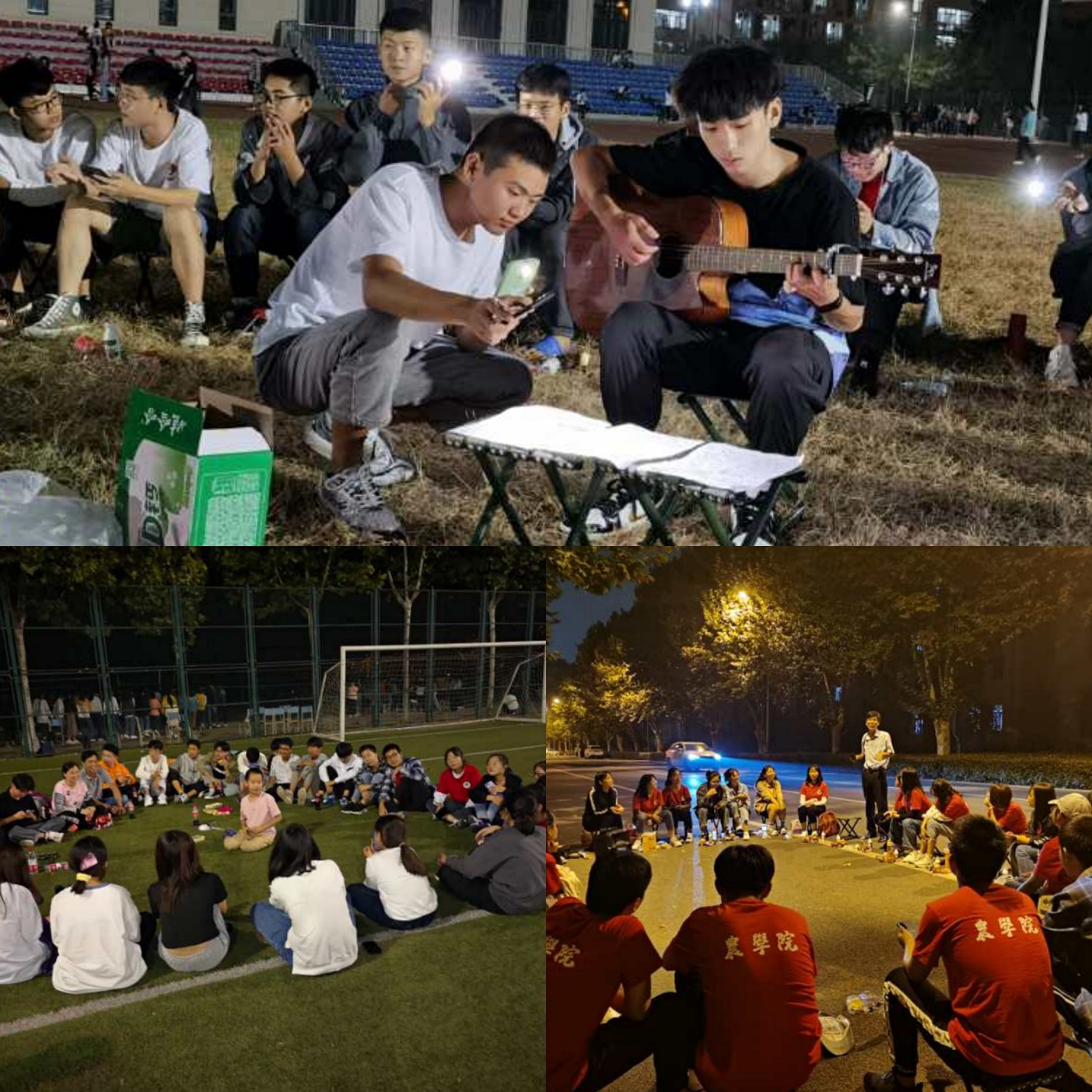 2020级师生们以班级为单位在田径场举办了以“共赏一轮明月,共度国庆佳节”为主题的一系列活动。