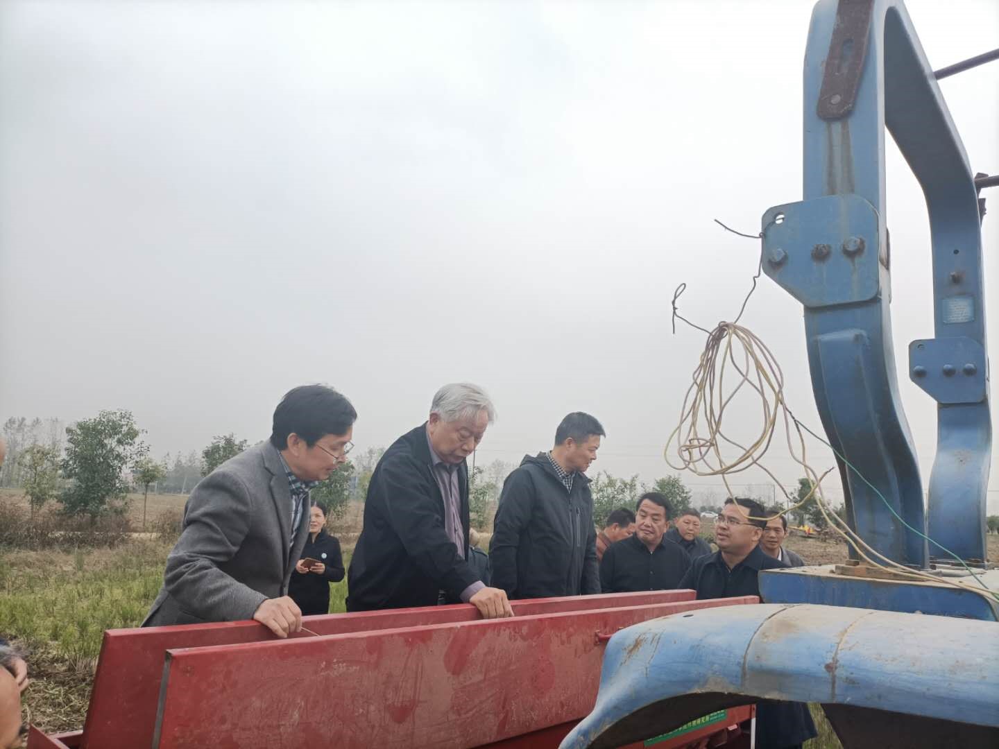 服务团一行查看示范基地新装备播种情况