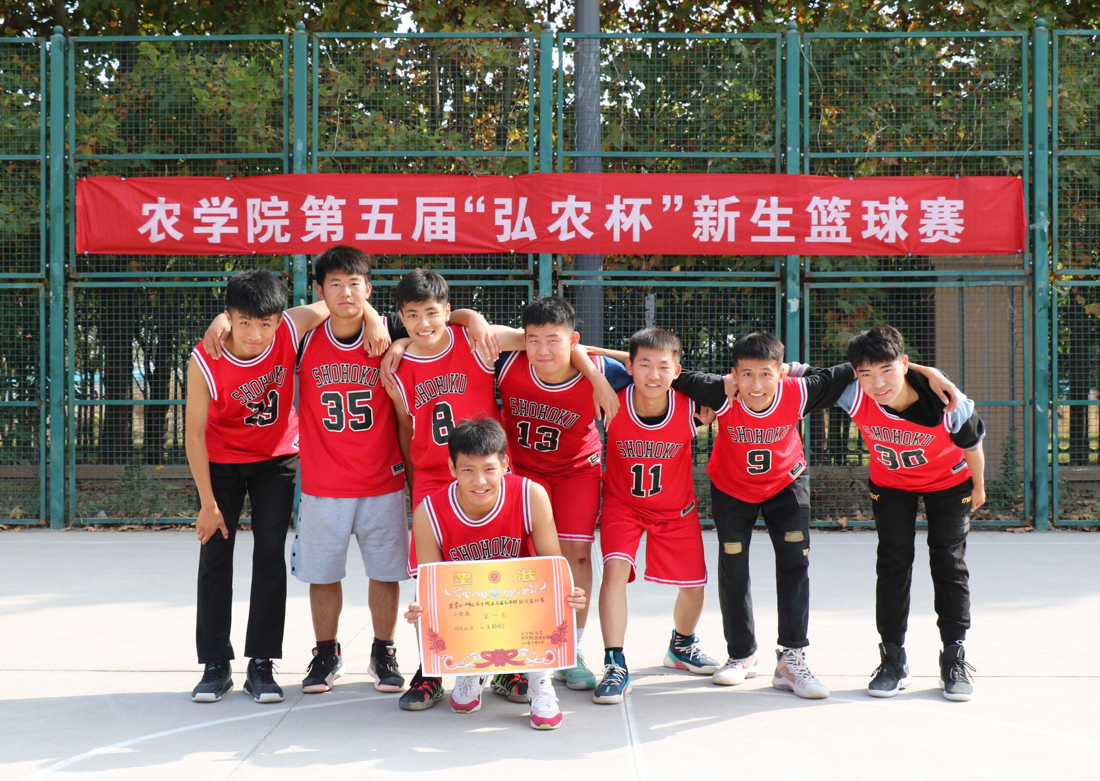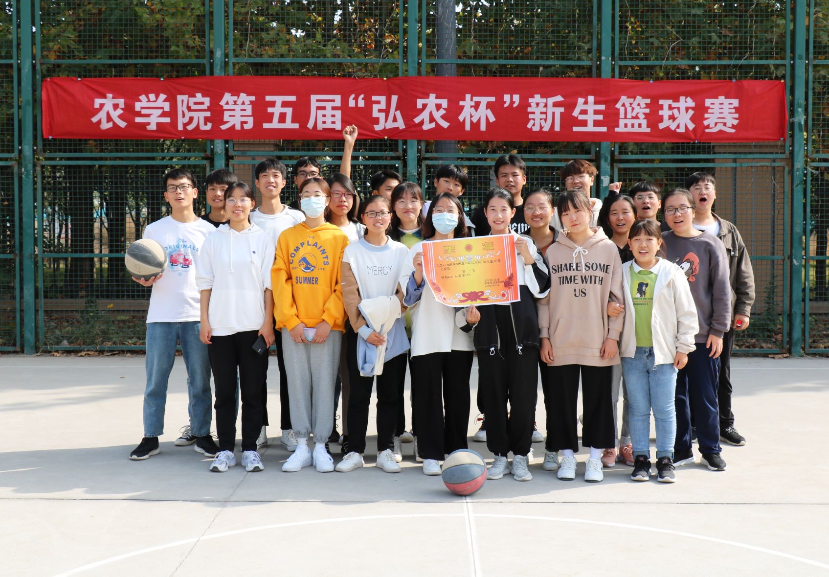 于龙子湖校区篮球场举办第五届“弘农杯”新生篮球赛,学院各新生班级共计八支队伍报名参赛。本次比赛采用抽签轮空制,分小组赛、八强淘汰赛、四强淘汰赛、决赛四项,历经一个月的激烈角逐,11月1日下午,决赛于龙子湖校区篮球场拉开序幕。