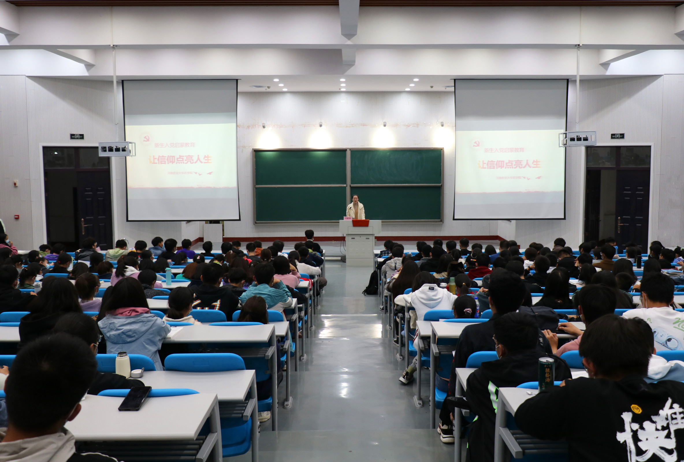在龙子湖校区大教室二举办2020级新生党性启蒙教育活动,本次主题教育由禁漫