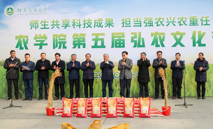 本网讯(通讯员 李盼)“民以食为天,食以米为先”。12月18日,学院在龙子湖校区第一餐厅前,隆重举办以“师生共享科技成果 担当强农兴农重任”为主题的第五届弘农文化节。副校长尹新明、林同保,校党委宣传部部长王红艳,校党委学工部部长徐峰,校党委研工部部长张红阳,校党委教师工作部部长、教务处处长冯建灿,校社会服务处处长贺德先,校实验室与设备管理办公室主任宋安东,校科技处副处长张世敏,校党委委员、禁漫
