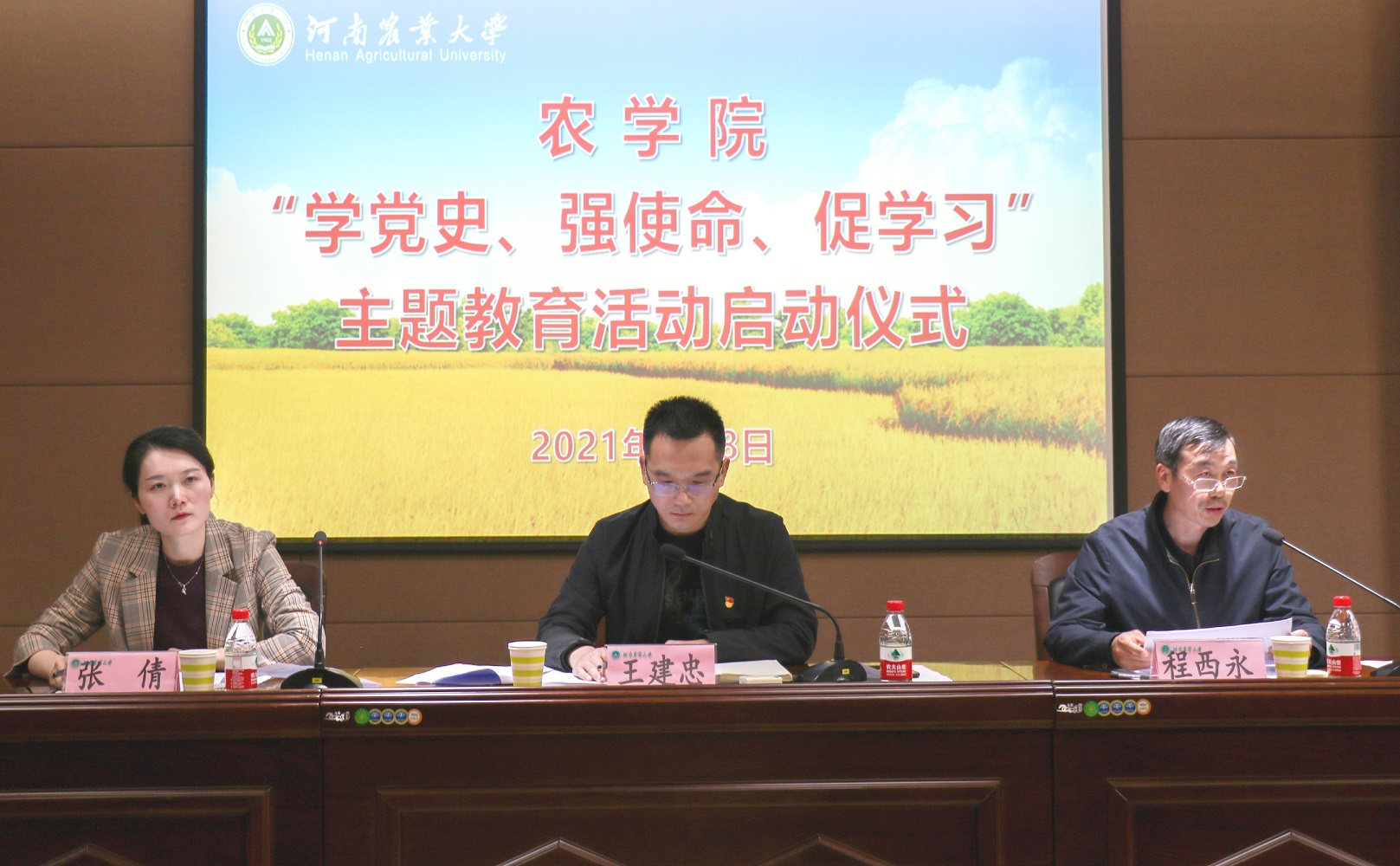 随后,班主任代表吴刘记老师结合自身经历阐述了学习党史在创建优良学风中的重要性,学生代表2019级农学3班张书华向全体同学发出从自身做起积极参加党史学习的倡议。