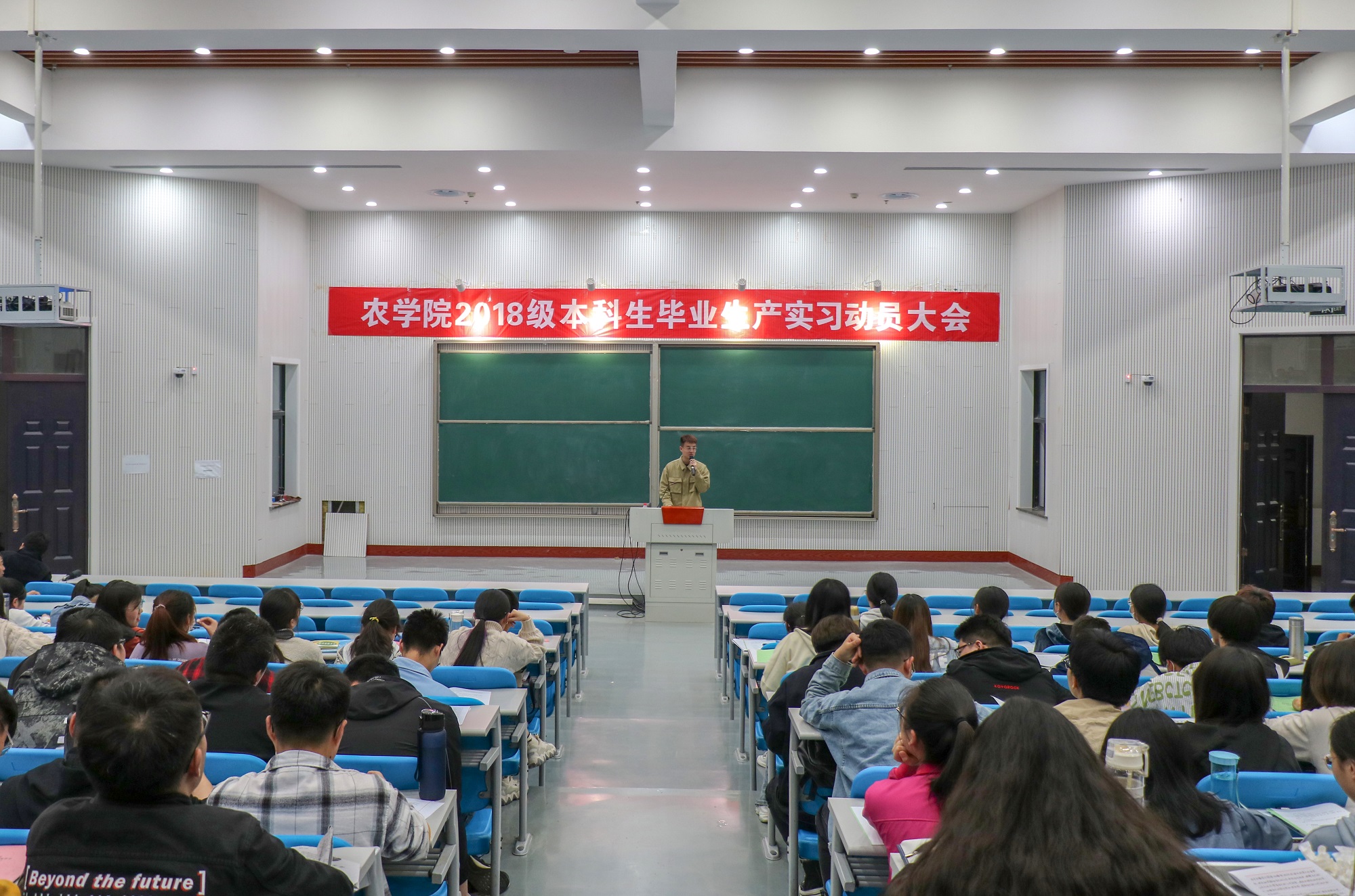 于4月20日晚在龙子湖校区繁塔楼大教室二开展2018级本科生毕业生产实习动员大会。本次会议由副院长程西永主讲,实习导师、2018级辅导员唐朝以及2018级全体本科生参加本次会议。会议由马兴立主持。