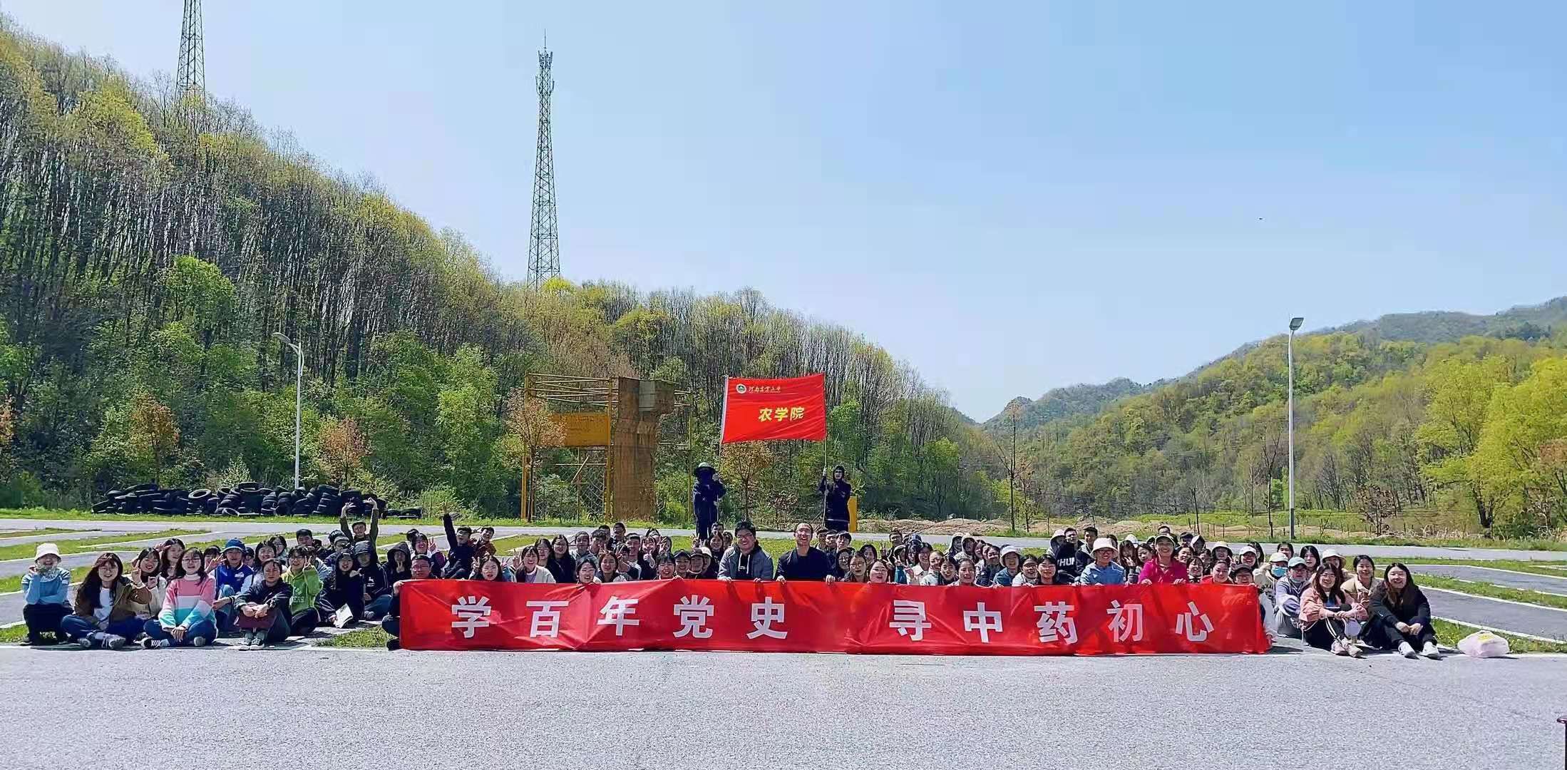 8名教师带领中药学专业2018级全体学生在西峡县桦树盘开展了以“学百年党史 寻中药初心”为主题的党史学习教育活动,将党史学习教育融入野外实习活动中,在伏牛山林间开展了沉浸式微党课、长征之路微模拟、红歌会等系列活动。