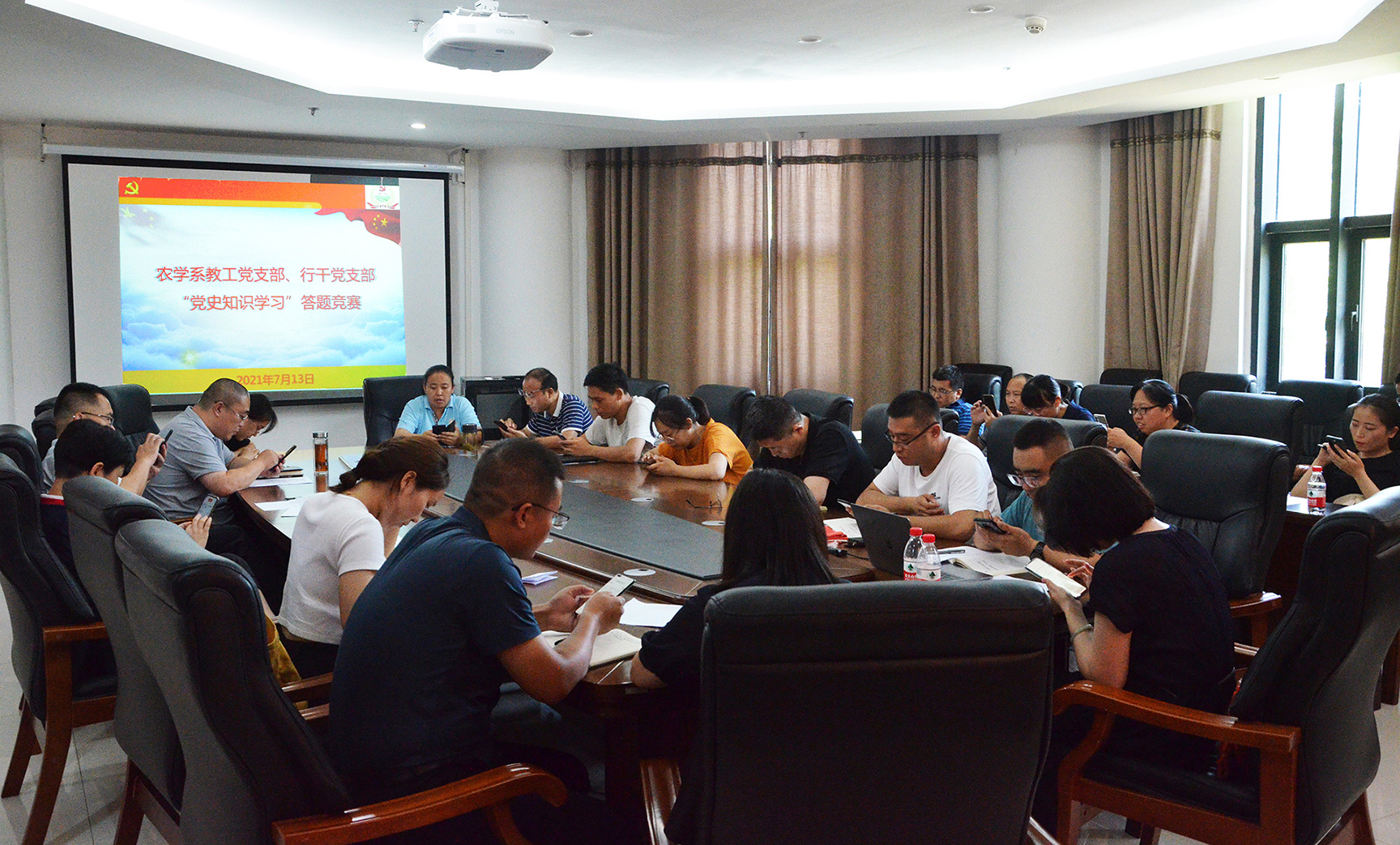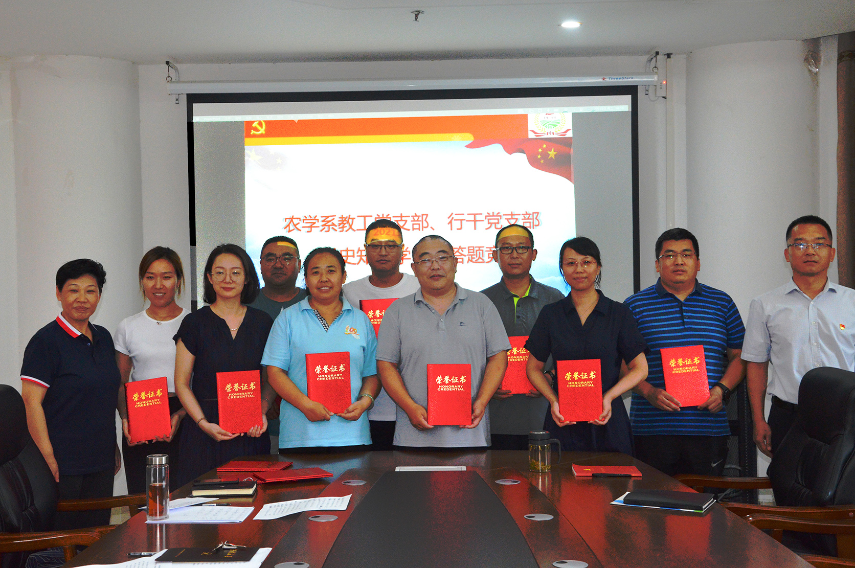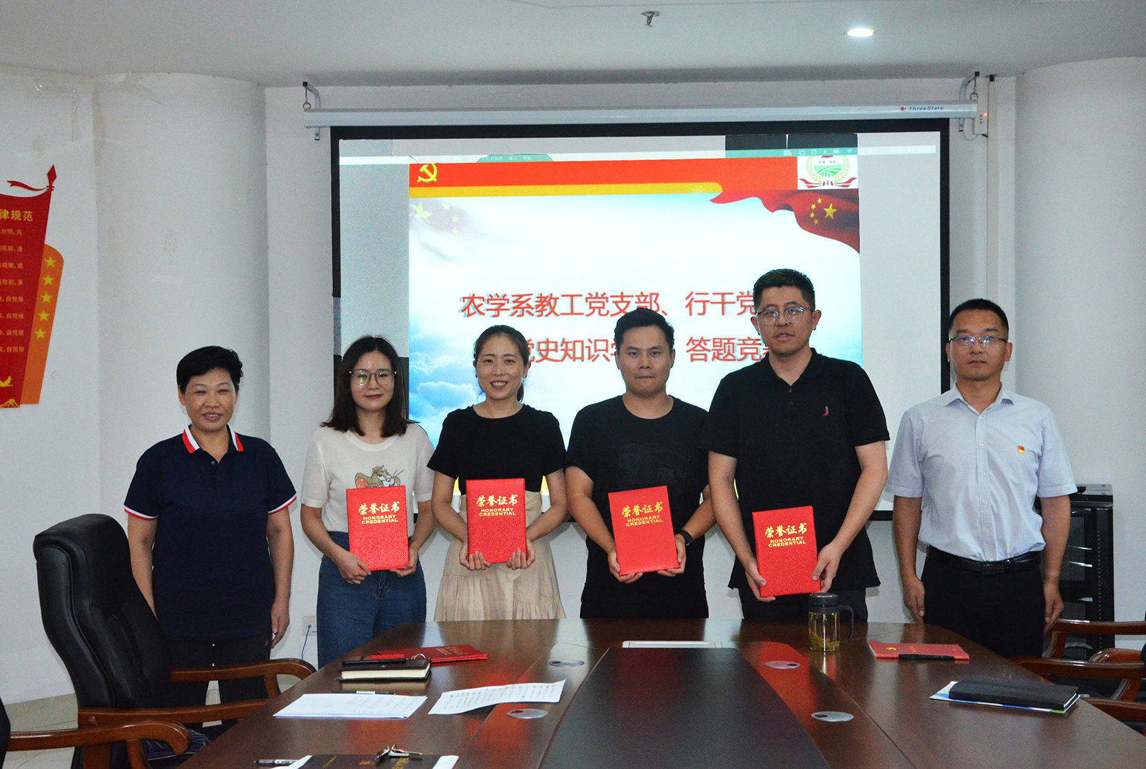 农学系教工党支部与行政管理教工党支部以“铭记光辉历史,激荡奋进动力”为主题联合开展“党史知识学习竞赛”活动。院党委副书记王建忠、副处级组织员蔡祖华出席活动并为获奖教师颁奖。