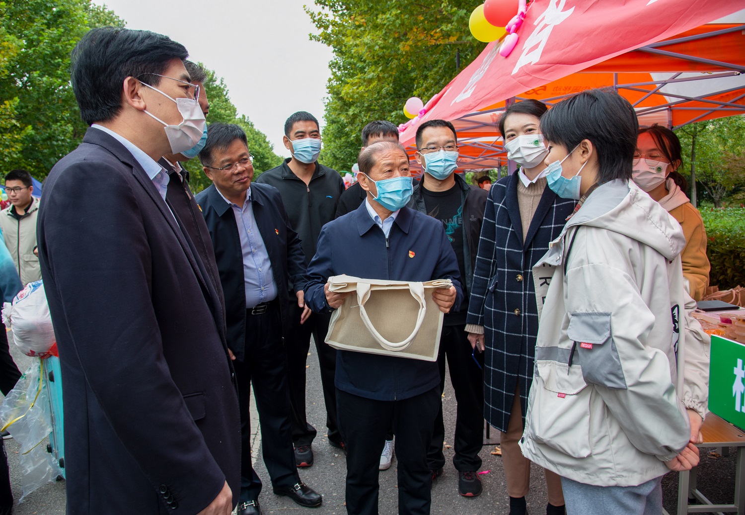 领导为新生颁发学院新生大礼包