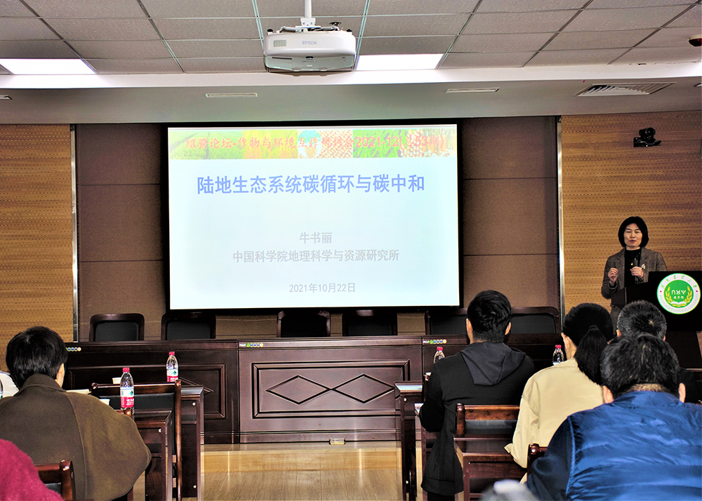 牛书丽老师以“陆地生态系统碳循环与碳中和”为题,首先详述了碳中和目标与陆地碳吸收之间的关系,并概述了中国陆地生态系统碳汇研究进展;最后,结合全球变化与陆地碳循环研究,揭示了生态系统碳循环响应全球变化的过程机理和生物调控机制,为更准确预测陆地碳循环变化提供了实验证据和新思路。