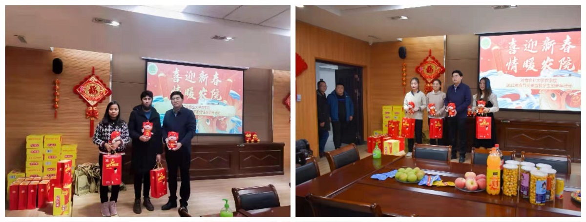 “喜迎新春·情暖农院”2022年春节关爱留校学生迎新年活动正在火热进行中。学院领导班子、研究生导师、辅导员和17名留校研究生欢聚一堂,包饺子、写春联、唠家常、送大礼……一道喜迎新春的到来。