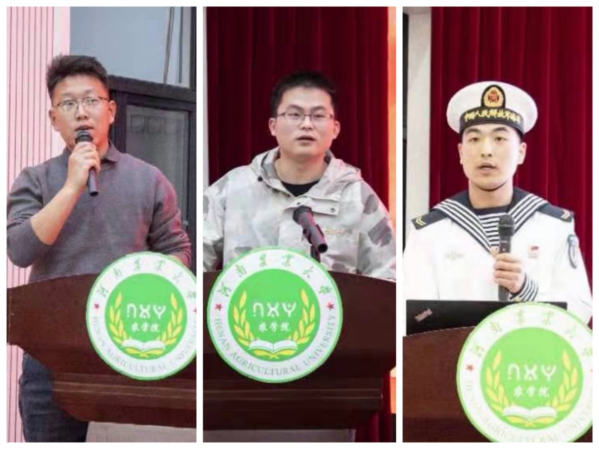 许世明作就业工作专题辅导报告。他结合统计数据向大家展示了近几年的考研形势变化,建议毕业生调整就业心理,做好科学的职业生涯规划。程西永向大家讲解了毕业论文设计的相关问题,强调毕业生一定要高度重视毕业论文的撰写,并预祝大家顺利完成论文答辩。殷贵鸿就安全、毕业、升学、就业等向同学们强调不能放松警惕,做好疫情防控,并建议考研同学要主动联系导师,准备好考研复试,鼓励同学积极主动创业就业。康广华结合自身经历向同学们分享了人生即主动选择、人生即把握机遇、人生即努力奋斗三点感悟,希望大家积极投入农业工作,为我国现代农业的发展注入新力量。高斌向大家分享了自身就业、创业的经历,鼓励学弟学妹要坚定信心,敢于创新,大胆创业。李俊畅总结回顾了自己研究生期间的成长和收获,从认真对待毕业实习、积极了解考研形势、把握学习主动权等三个方面详细介绍了毕业生如何在离校前充分利用时间,提升自我,也期望未来能为母校发展尽绵薄之力,为祖国事业添砖加瓦。王奥威分享了自己的军旅生活,详细讲解了参军入伍的各项优待政策,为毕业生的职业选择提供了新的方向。