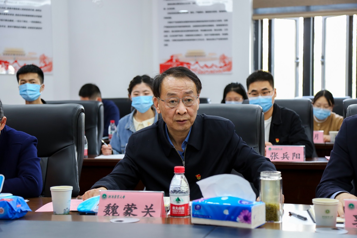 魏蒙关讲话。他对农学专业学生第一党支部所开展的富有成效的学生党建工作给与充分肯定,对支部学生党员的优秀表现表示衷心祝贺。