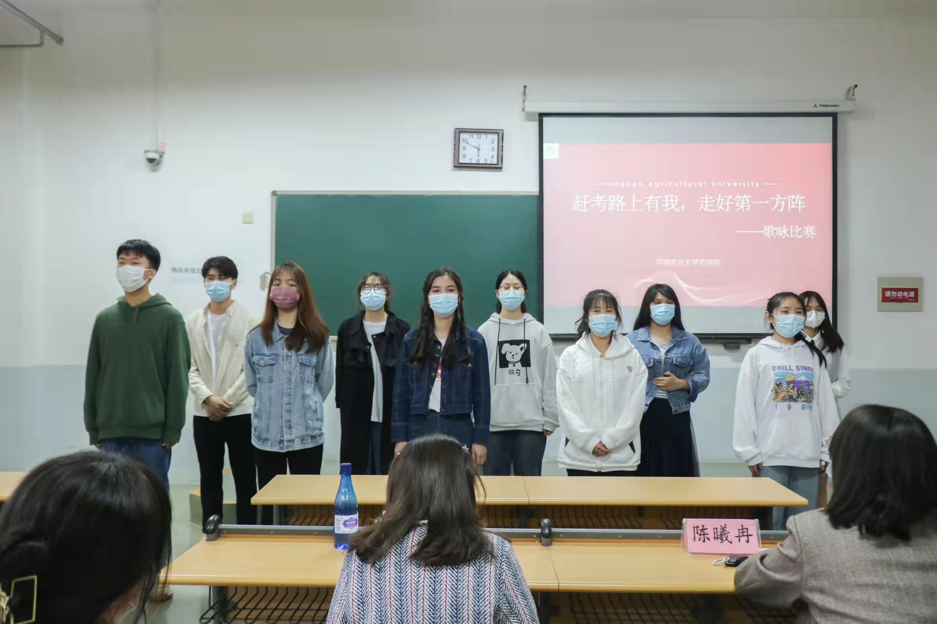 在龙子湖校区教学楼E405教室举办“赶考路上有我,走好第一方阵”主题歌咏比赛。2021级农学5班和2020级中药4班等15支队伍参与本次比赛,院团委老师李玥瑞、陈曦冉、唐朝和学生会文艺部同学担任评委。