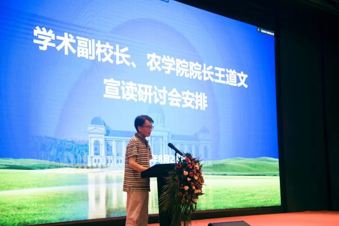 王道文主持闭幕式并讲话。他围绕本次 “强能力、转作风、促发展、创一流”的研讨会主题,希望大家要“强我能力”,不断提升自身业务素质和工作能力;要“转我作风”,躬身入局,务实重干;要“促学院发展”,围绕高校五大职能,推动学院事业高质量发展;要“创一流学科”,增强信心,凝心聚力,弘扬老一辈科学家精神,加快作物学一流学科创建。