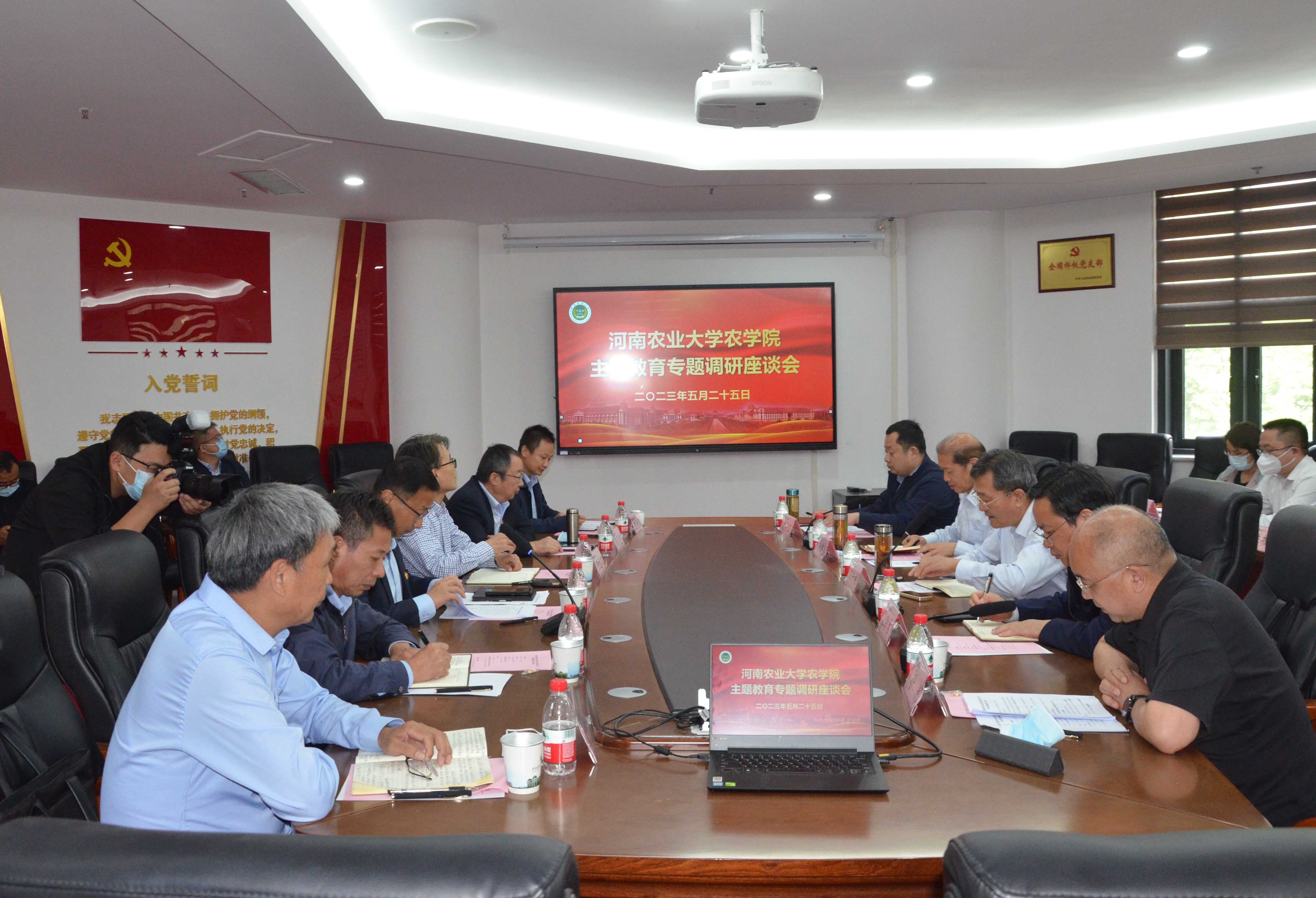 以主题教育为契机,从理论学习、调查研究、问题整改等方面着手,聚焦问题,以学促干,推动学院事业高质量发展;王道文从建设基础、建设成效、存在问题、未来规划等方面汇报了作物学学科“双一流"创建情况;陈彦惠、汤继华、马新明、王桂凤分别就新品种示范推广应用、科技创新服务“双一流”创建、国家三大奖申报服务“双一流”创建及中青年教师服务学科发展等方面进行了汇报。