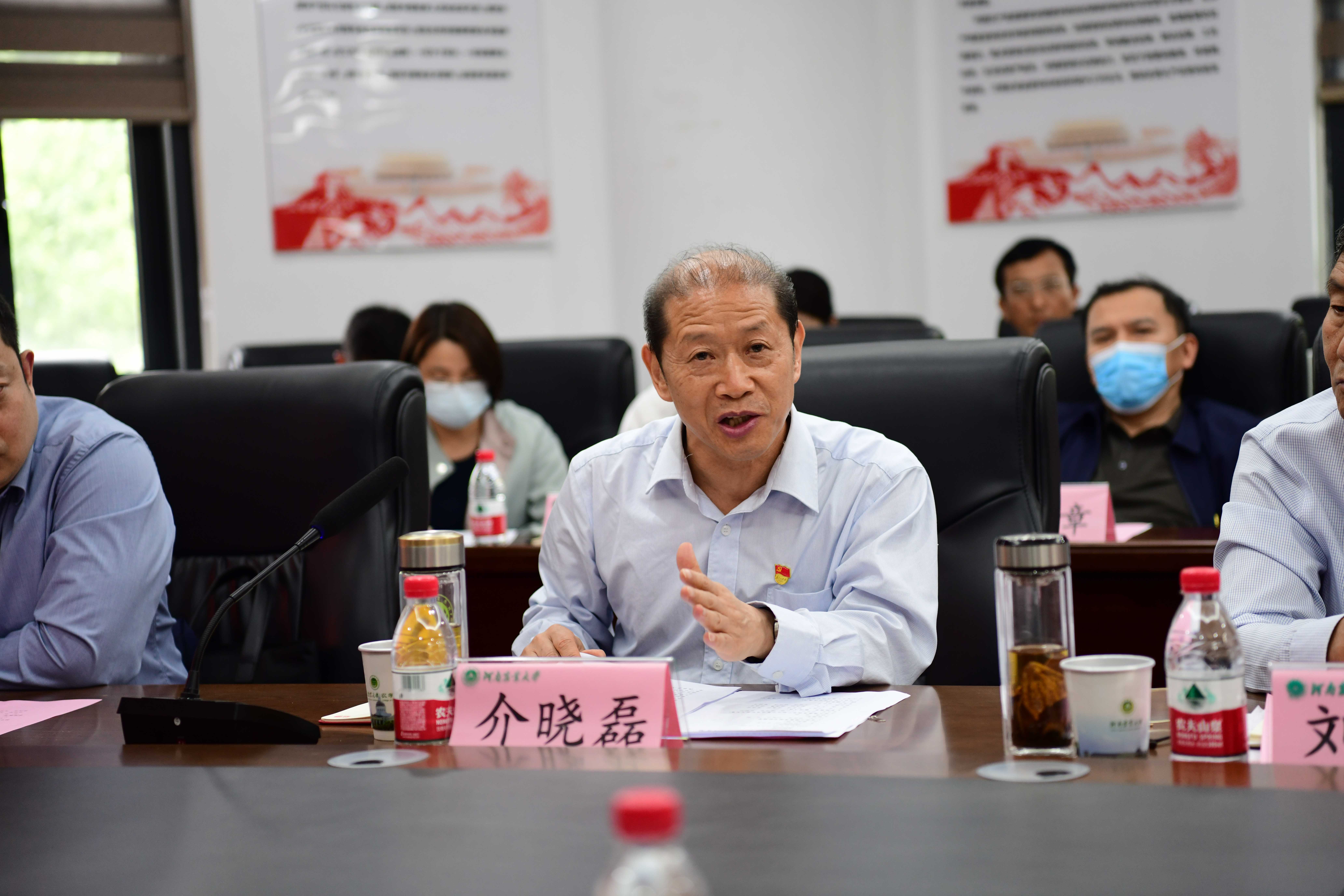 介晓磊随后强调, 要始终牢记习近平总书记的嘱托,优先发展教育,优先发展农业农村,立足河南放眼全国,在服务和保障粮食安全中承担责任,不断开辟事业发展的新赛道新领域,培育新动能新优势。一是要在主题教育中走在前列,扎实开展主题教育,聚焦突出问题,关键环节,把主题教育与事业发展紧密融合;二是要在一流创建中干在先,要进一步优化顶层设计,理顺发展机制,走好产教融合和科教融合道路,在人才培养、科技研究、社会服务和国际合作交流中走在前列;三是要在立德树人中当好标杆,为党育人为国育才,在产学研深度融合育人新格局中把拔尖创新型人才和复合应用型人才培养好,为学校其他学院做好示范和榜样;四是要在强农兴农中做表率,要履行好强农兴农使命,把论文写在祖国大地上,坚持从生产中找课题,从破解课题中不断服务农业生产。