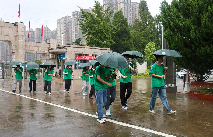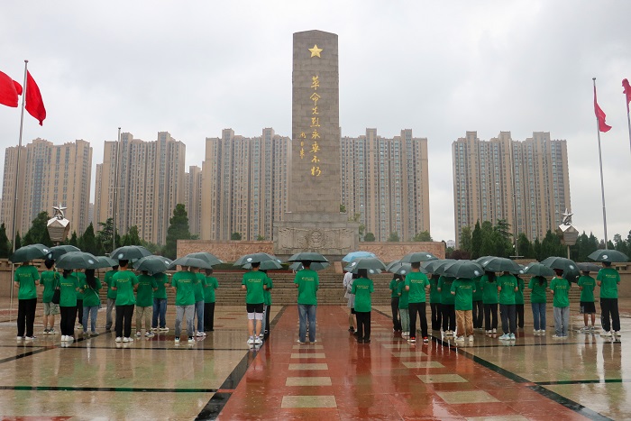 细雨绵绵,青马班成员撑伞步行进入郑州烈士陵园。大家队列整齐,手持白菊,在革命先烈纪念碑前肃立并深切哀悼牺牲英烈。随后,全体成员向烈士们献花并三鞠躬表达敬意与缅怀。