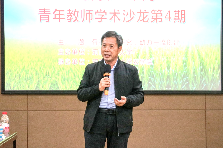 会议伊始,马菲致欢迎辞。他对参加本次活动的嘉宾、领导和老师表示热烈欢迎。他围绕本次活动的主题和宗旨提出了“两个为什么”,并阐述了选择骨干种质周8425B为此次学术沙龙的主要交流方向的原因。他对青年教师提出了三条建议:一是动力,鼓励青年教师在科研之路上始终保持好奇心、想象力、探求欲,要培养献身科研事业的人才群体;二是方向,青年教师虽有智慧,不如趁势,努力学习,融入一流,集中力量,聚焦科研方向,提高科研水平;三是坚持,叮嘱青年教师要耐住寂寞,要有板凳要坐十年冷的决心和毅力,不要做短、平、快的科研,要坚持做有用的科研。