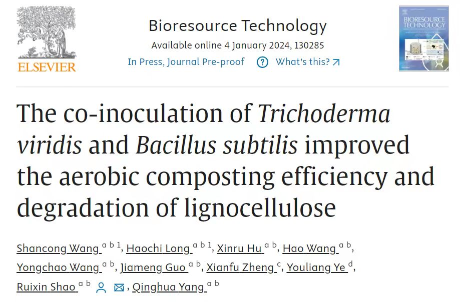 杨青华教授团队在生物有机肥制作方面取得重要进展,该成果在环境与微生物领域著名期刊《Bioresource Technology》(IF:11.4)在线发表了题为“The co-inoculation of