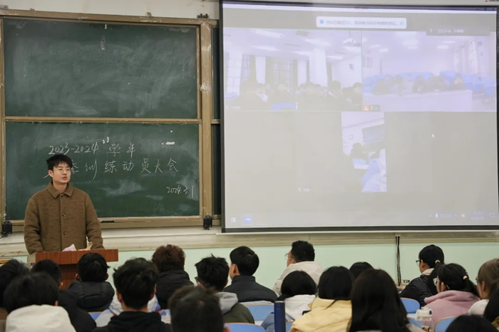 于龙子湖校区C102教室与文化路校区工程楼103教室两校区同步举行春季训练动员大会。此次动员大会由禁漫