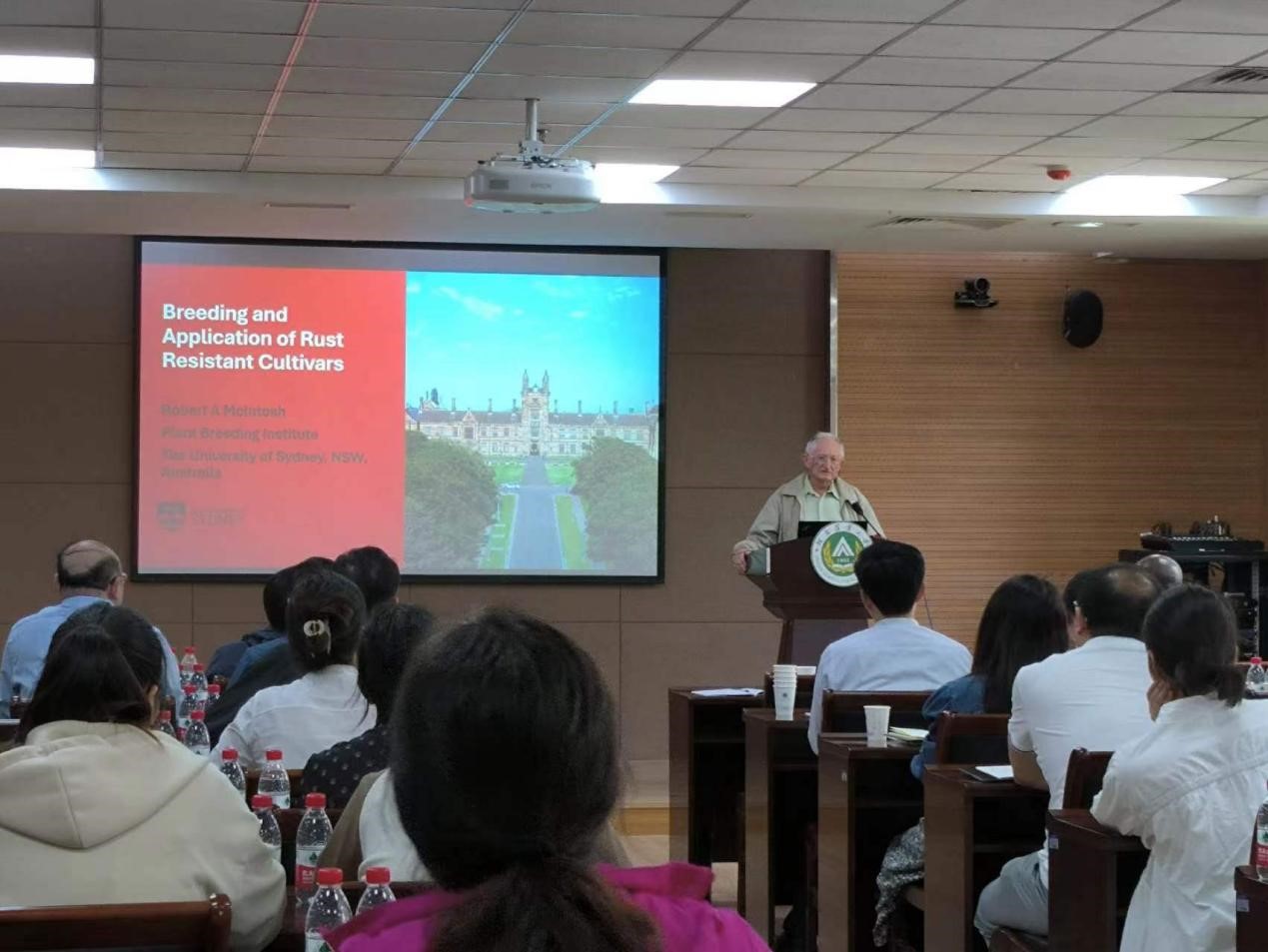 Robert McIntosh教授,澳大利亚科学院院士,现为澳大利亚悉尼大学植物育种研究所荣誉教授,国际著名植物遗传育种专家和小麦锈病专家,国际小麦抗病育种协调人。兼职多个国际著名刊物主编、编委,任国际小麦基因命名委员会主席。曾获国际植物病理学E. C. Stakman最高奖(2002)、Farrer Memorial金奖(1976)和澳大利亚农业科学金奖(1987)。McIntosh教授长期从事小麦抗病基因发掘与利用、遗传学、细胞遗传学研究和教学工作,在国际小麦遗传育种、尤其是抗病遗传学研究领域享有很高声誉。