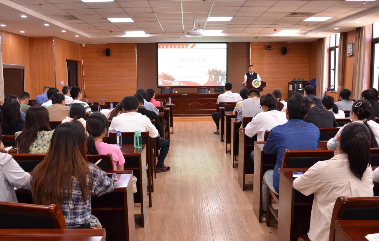 师生消防安全意识,筑牢学院消防安全思想防线,4月23日,学院邀请河南省消防协会、义务消防科普宣传服务队刘顺齐教员于第一实验楼南321报告厅为学院师生开展消防安全知识专题讲座。讲座由李浩贤副院长主持。