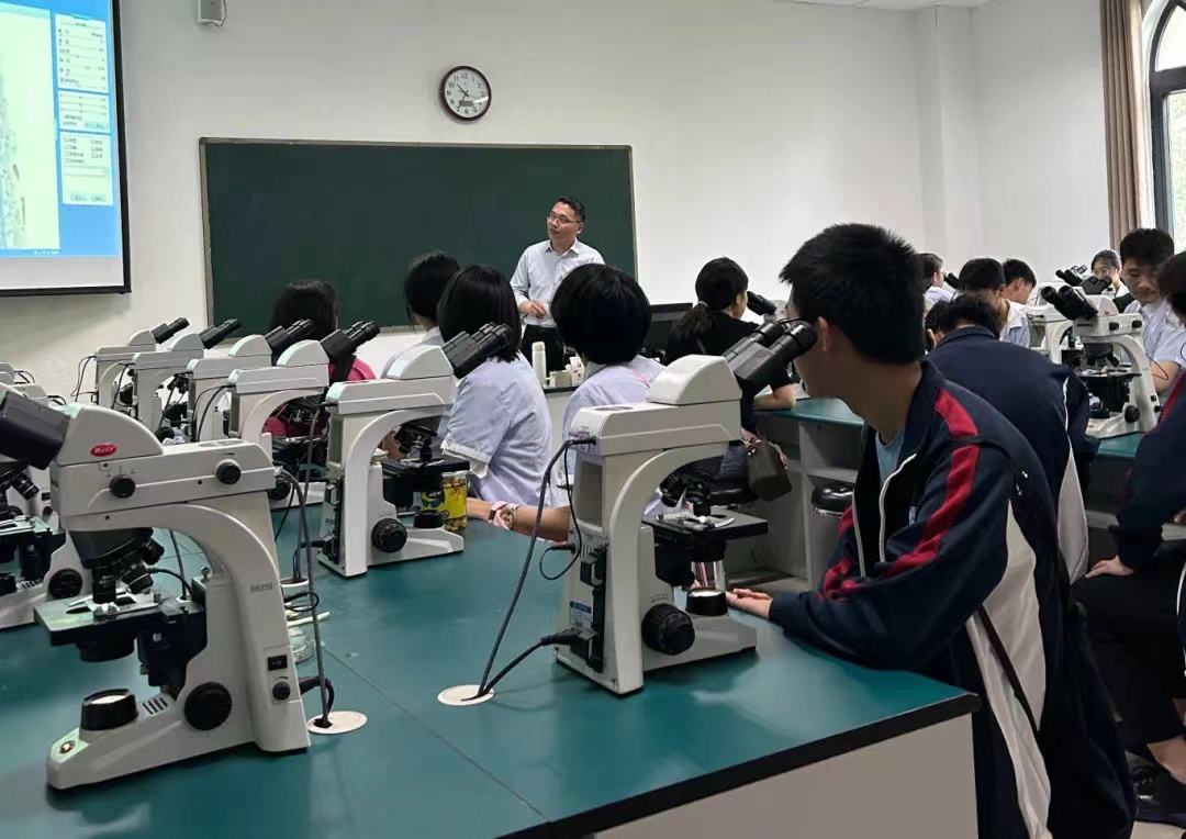 在作物学省级实验教学示范中心,来访学生仔细观察实验室展示的三百余种中药饮片,在李连珍老师的讲解下,来访学生对现场的中药饮片迸发出极大的兴趣,积极向老师询问相关药材功效。随后在季洪强和董朋飞两位老师的指导下,来访学生在显微镜实验室观察了细胞有丝分裂的过程。在中药学实验室,来访学生亲自动手制作中药香牌,品尝中药学专业学生制作的酸梅汤、果冻,以及禁漫