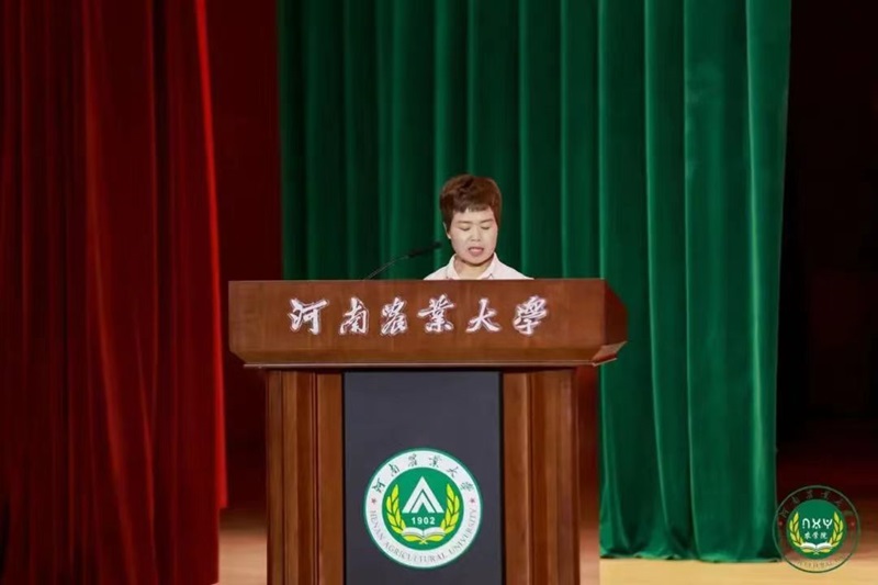 王道文作最后的致辞,他用诚挚的话语回顾了老一辈农大人扎根黄土地,用双手为农作物提质增产,用汗水为农作物保驾护航,用勤劳突破产量的极限,深切地与同学一起回顾了历经疫情洗礼的青葱岁月。并向大家提出三点期望: