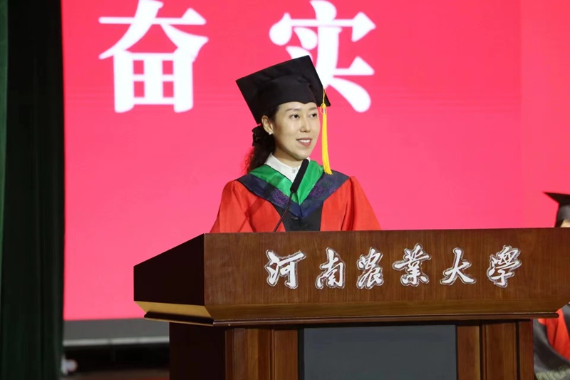 会议伊始,与会人员起立高唱国歌。随后李浩川和陈锋分别宣读本科生和研究生学位授予名单。接着由本科生毕业生代表2020级农学专业学生吴晗,研究生毕业生代表2020级农艺与种业专业学生熊雪航,家长代表20级中药专业学生王一博家长郜少敏,教师代表2020级农创班班主任王桂凤分别发言。
