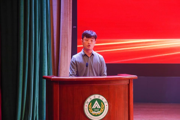 本科生新生代表李艺淼同学发言。李艺淼讲述了与农学的不解之缘。作为一个土生土长的河南人,外公的辛勤耕耘日益影响着她。她向同学们号召,作为新生的他们也将秉承“团结勤奋,严谨求实”的院训精神,不断追求卓越,勇于担当责任,同时希望大家要以最饱满的热情迎接即将到来的大学生活。