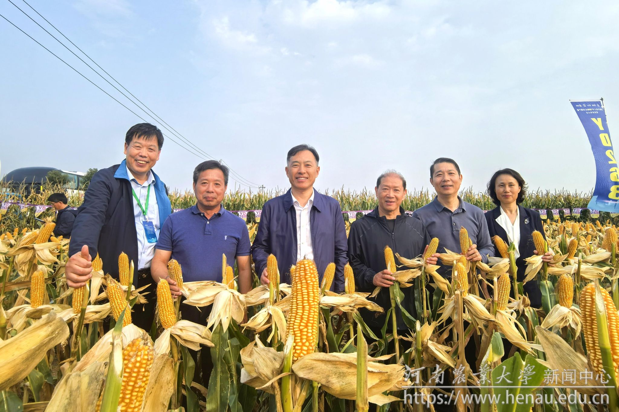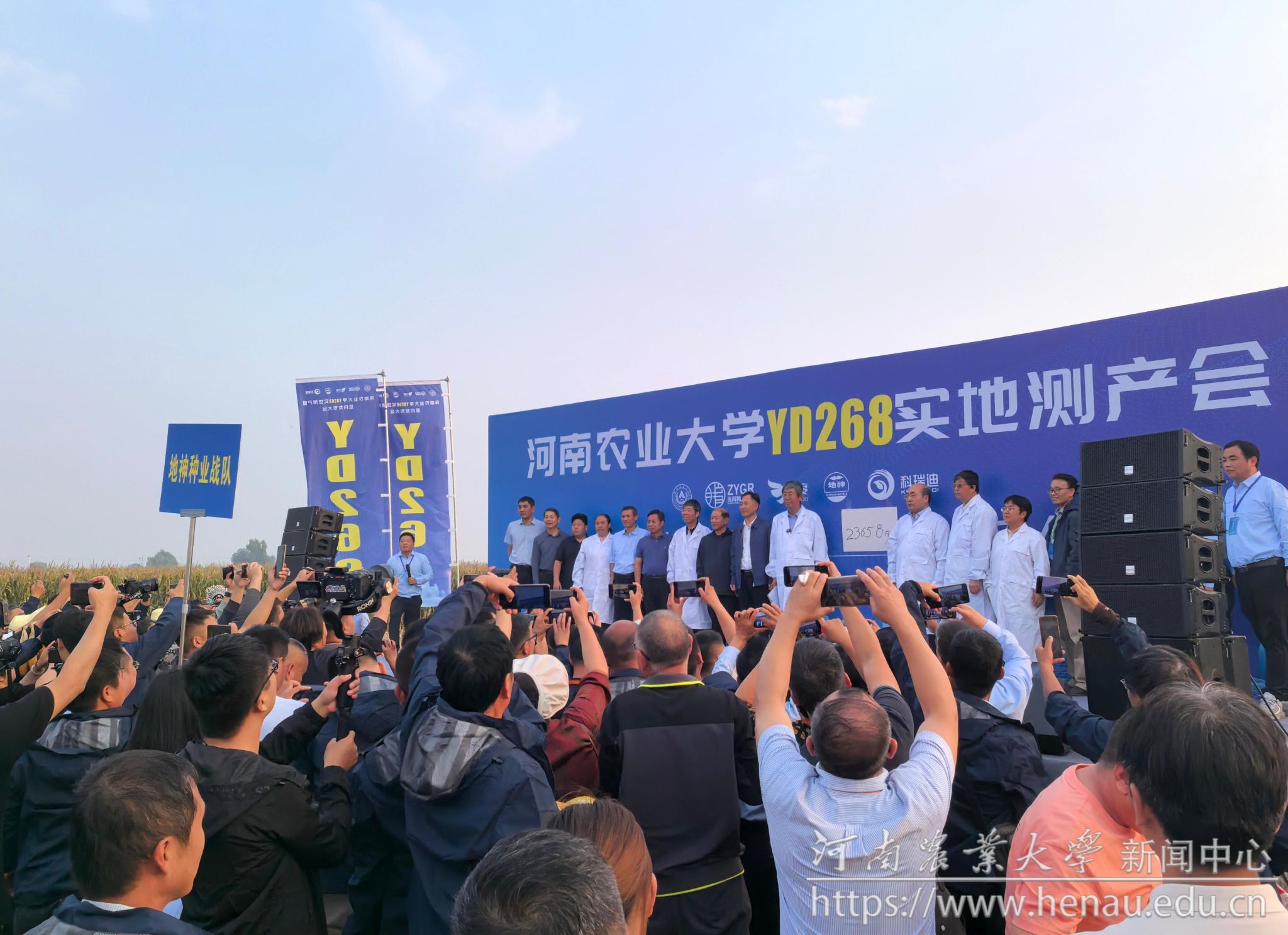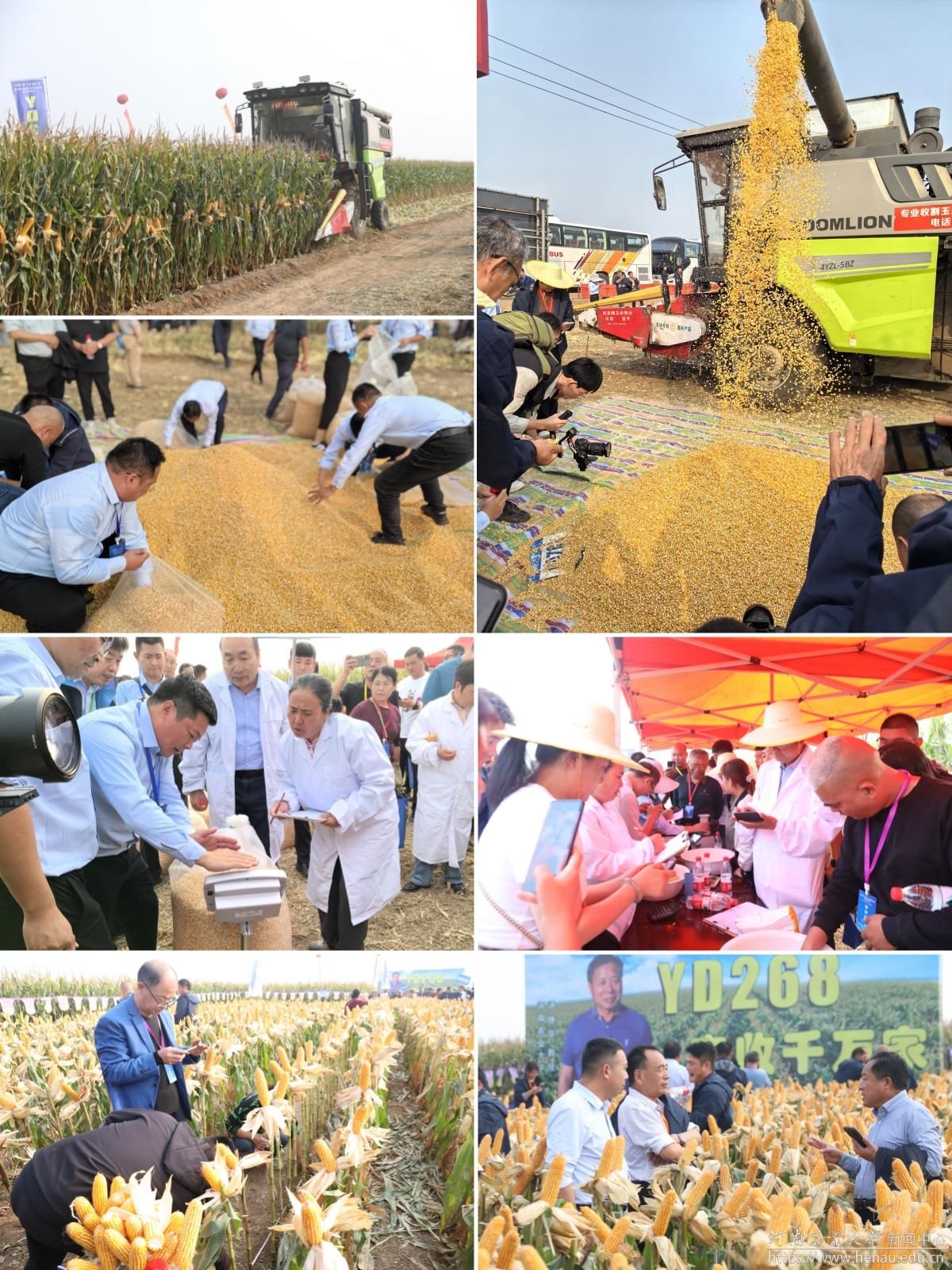 本网讯(记者 周红飞 黄璞 图片 秦晓璐 裴辉)金秋时节,正值喜迎丰收和播种希望之时。10月9日,禁漫 选育的玉米新品种YD268实地测产观摩会在素有“豫北粮仓”之称的河南省鹤壁市举行。禁漫 校党委书记李成伟,原校长介晓磊,学术副校长、禁漫 院长王道文,学术副校长、YD268育种团队负责人汤继华出席活动。学校党委办公室、党委宣传部、社会服务处、禁漫 负责人,YD268育种团队成员,河北兆育种业集团有限公司、北京丰度高科种业有限公司、河南黄泛区地神种业有限公司、河南慧博科瑞迪农业科技有限公司主要负责人,以及来自黄淮海玉米主产区8个省区的种子经销商和种粮大户400余名汇聚在此,共同见证YD268的机收籽粒现场测产。