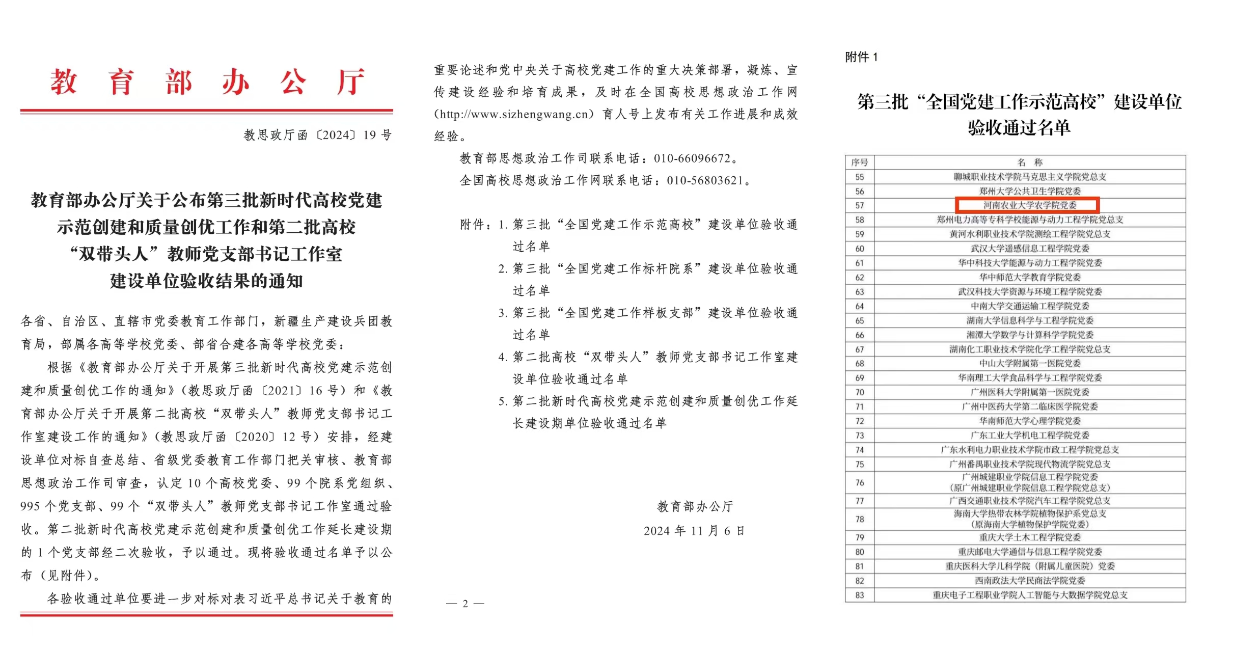 本网讯( 通讯员 李盼)近日,教育部办公厅发布《第三批新时代高校党建示范创建和质量创优工作和第二批高校“双带头人”教师党支部书记工作室建设单位验收结果的通知》,禁漫