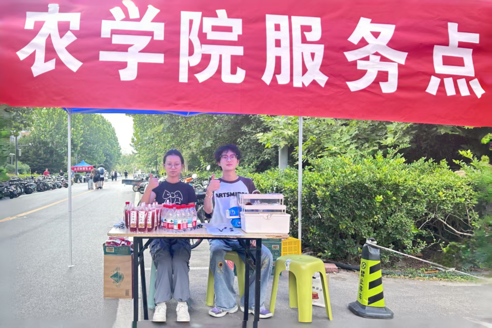 还配备了防中暑药品及跌打扭伤医疗包,确保师生在搬迁过程中的健康与安全。此外,服务点还贴心地提供了香蕉、小面包等食品,为师生补充能量。不仅如此,后勤部门提前检修搬迁车辆,确保运输安全,并调配充足的打包材料、推车等物资;保卫处增派安保力量,加强校园交通疏导与秩序维护,在主要路口设置临时交通标识,引导车辆安全通行;各学院安排专人在服务点值守,实时掌握搬迁进度,协调解决突发问题。同时,学院还及时发布搬迁动态,让学生提前了解流程与注意事项。各部门协同联动,形成工作合力,为搬迁工作筑牢坚实保障。