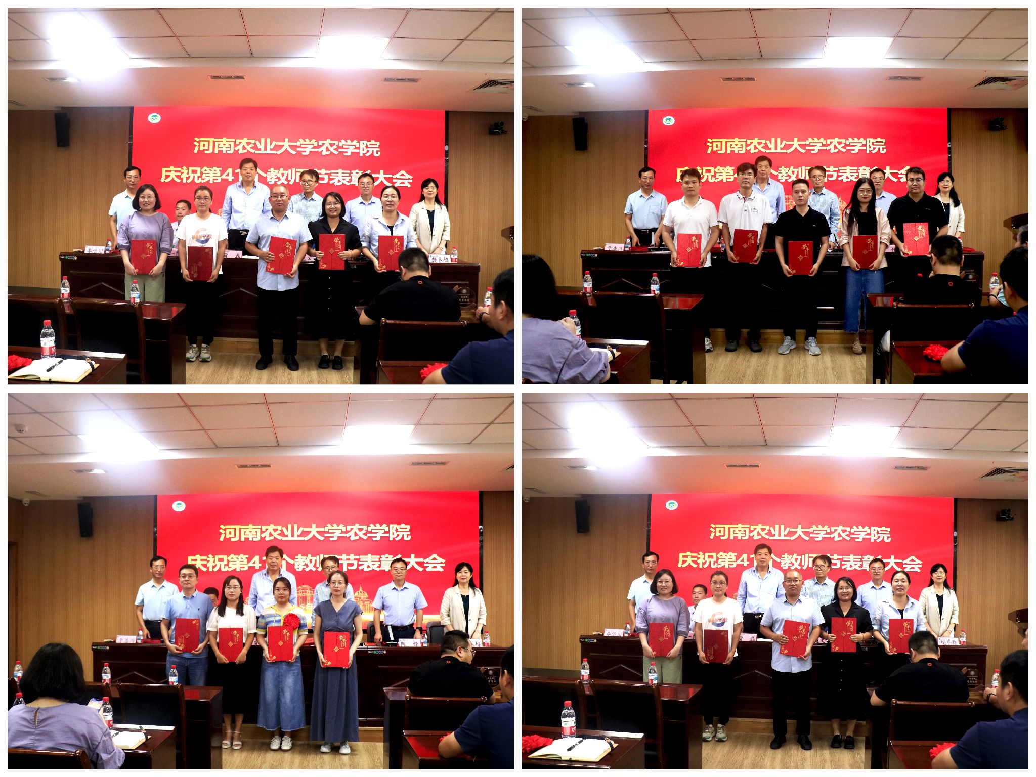 大会在庄严的国歌声中拉开帷幕。院党委书记贾磊、院长王道文为从教30年以上教师、光荣退休教师颁发纪念奖牌;副院长李浩川为胡彦民老师和许海霞老师颁发教学督导聘书;副院长殷冬梅宣读一年来获得荣誉的教师名单。